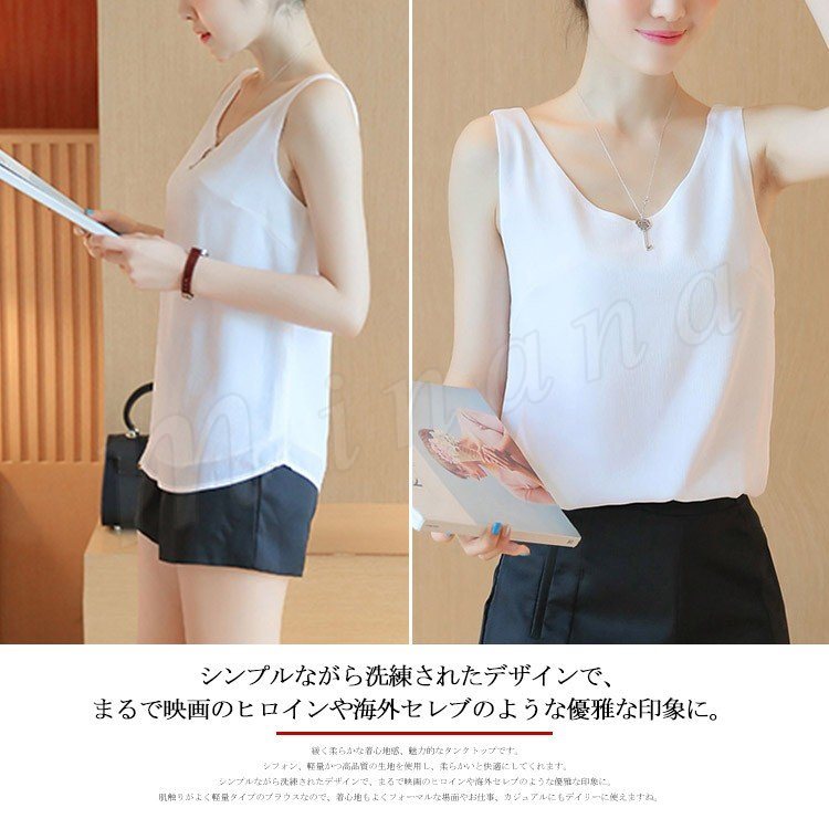 | 緩く柔らかな着心地感、魅力的なタンクトップです。シフォン、軽量かつ高品質の生地を使用し、柔らかいと快適にしてくれます。シンプルながら洗練されたデザインで、まるで映画のヒロインや海外セレブのような優雅な印象に。肌触りがよく軽量タイプのブラウスなので、着心地もよくフォーマルな場面やお仕事、カジュアルにもデイリーに使えますね。 | |||