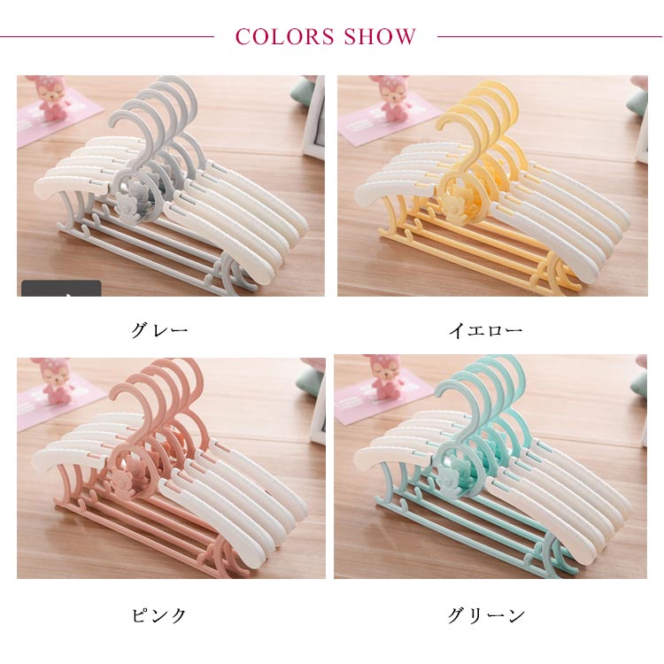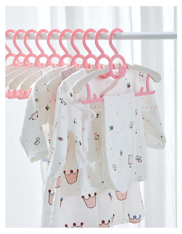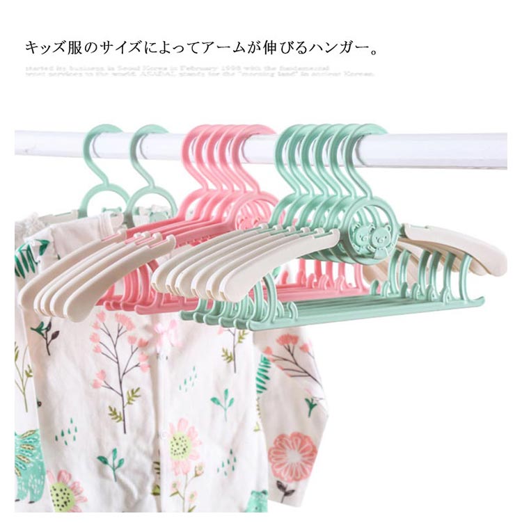 ハンガー 10本セット 子供用 キッズ 子供用ハンガー ベビー用ハンガー 伸びるハンガー プラスチックハンガー 収納 省スペース 頑丈 丈夫 変形にくい フック付き 多機能 乾湿両用