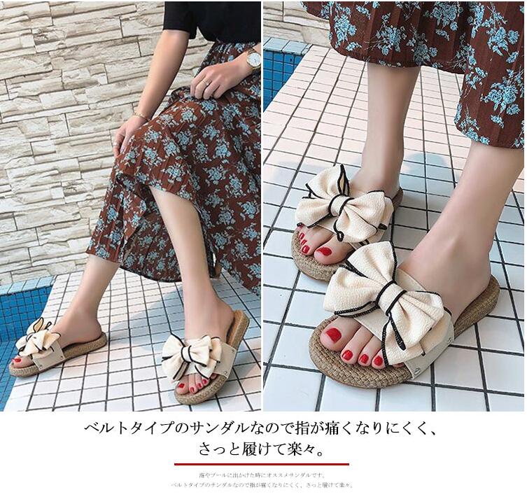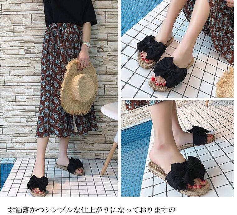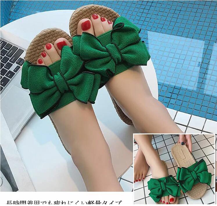 送料無料サンダル スリッパ レディース リボンつき かわいい リボンサンダル ペタンコ ビーチ コンフォート スリッパ 可愛い 歩きやすい 滑りにくい 通気