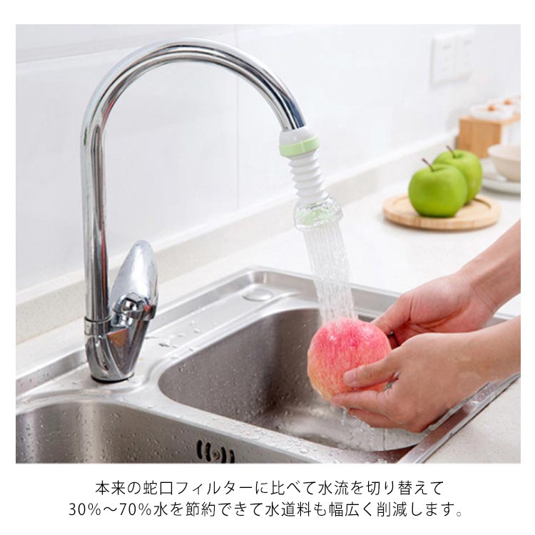 | 家庭用のキッチン、浴室、洗面台、お手洗いの蛇口に適している。 食器洗い機への予備洗いにも最適で節水効果も期待できます。 本来の蛇口フィルターに比べて水流を切り替えて30%?70%水を節約できて水道料も幅広く削減します。 これは、エネルギーの節約と水のコストの削減に非常に適しています。 | |