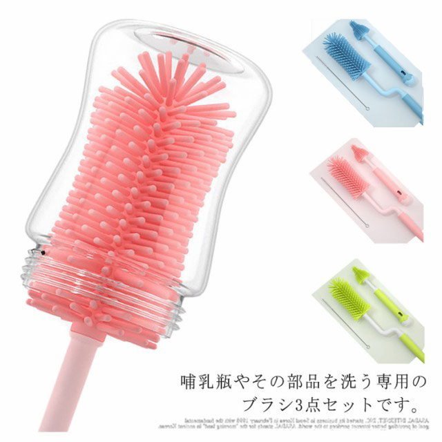 哺乳瓶ブラシ 3点セット 哺乳びんブラシ ストローブラシ おしゃぶりブラシ 乳首ブラシ 洗浄ブラシ シリコン 赤ちゃん用品 ベビー用品 マグブラシ 細い 隙間 出産準備 ベビーグッズ