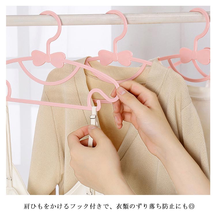 | 子供専用のプラスチックハンガー。 肩ひもをかけるフック付きで、衣類のずり落ち防止にも◎ 太めのラックや物干し竿にも対応できるから嬉しいポイント。 プチプラな価格でコスパよい。 | |