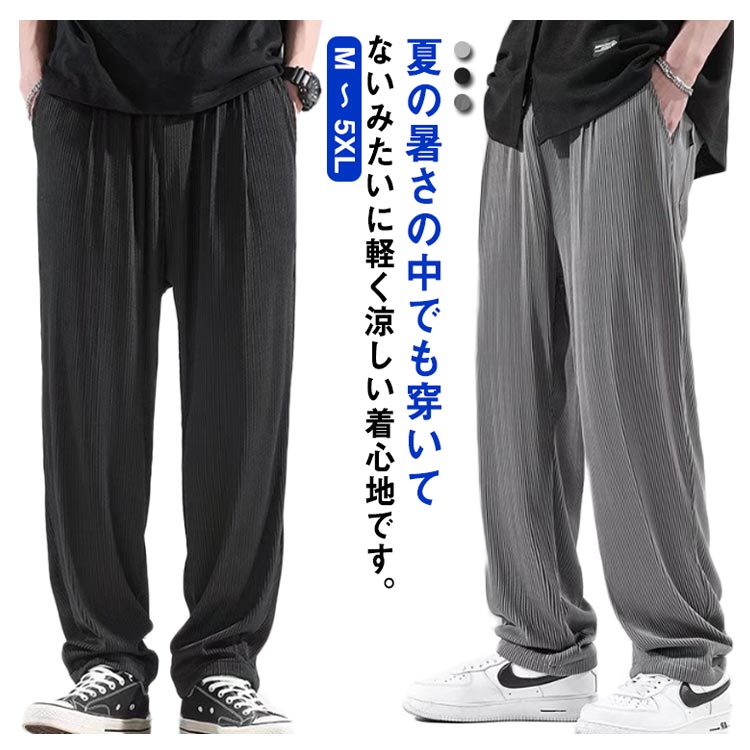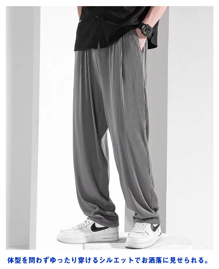 冷感サラサラ ワイドパンツ メンズ 接触冷感 速乾 ダンス ストレッチパンツ ボトムス 大きいサイズ アイスシルク ズボン アイスシルクパンツ アイスシルクロングパンツ メンズ 送料無料