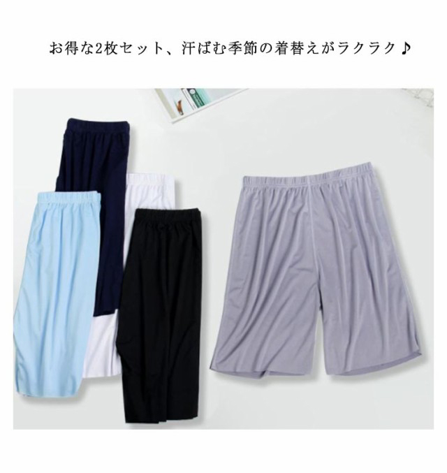 ルームパンツ メンズ 夏 接触冷感 ステテコ 2枚セット 薄手 ゆったり ハーフパンツ スポーツ パジャマ 大きいサイズ 5分丈 ウエストゴム 無地 ひんやり ルームウェア 半ズボン リラックス ワイドパンツ 部屋着 快適 送料無料