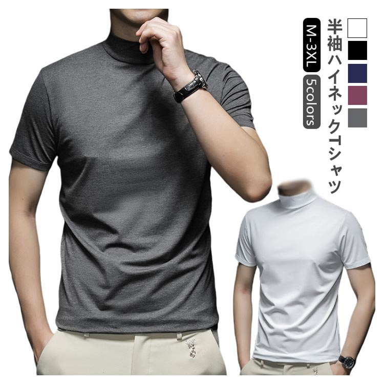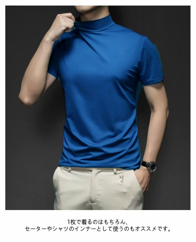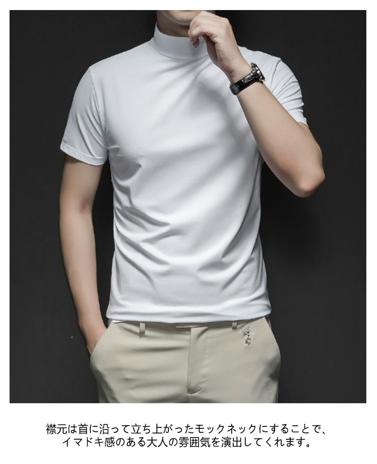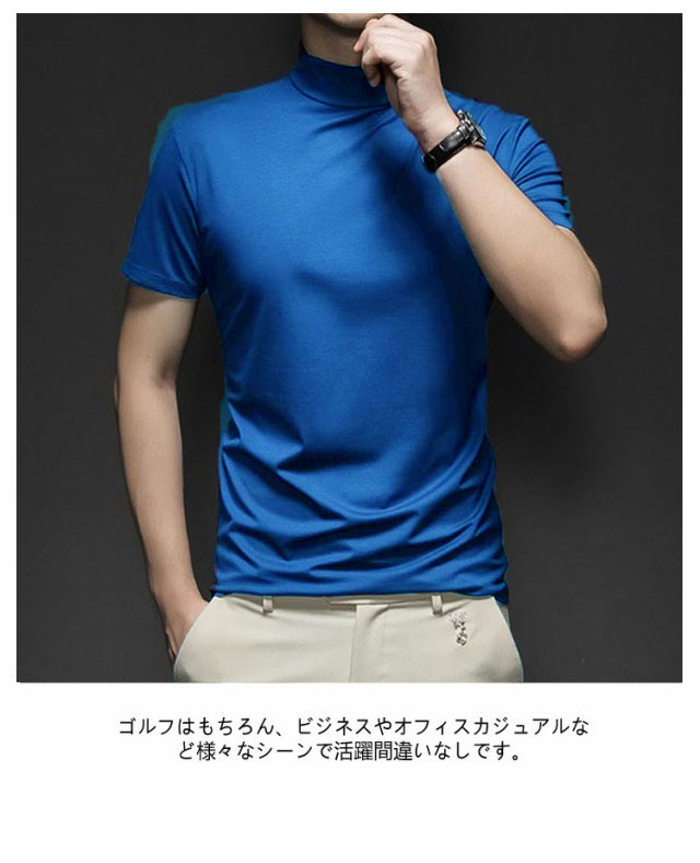 ハイネック tシャツ ゴルフウェア メンズ 半袖 無地tシャツ モックネック カットソー 春夏 ゴルフ ハイネックtシャツ ティーシャツ UVカット インナー トップス カジュアル シンプル イベント ユニホーム ビジネス スポーティ