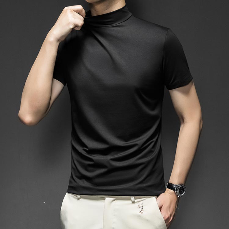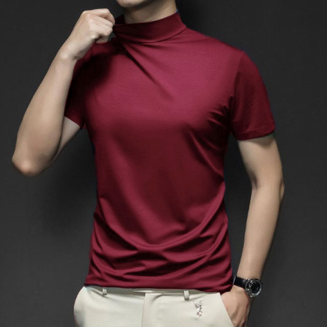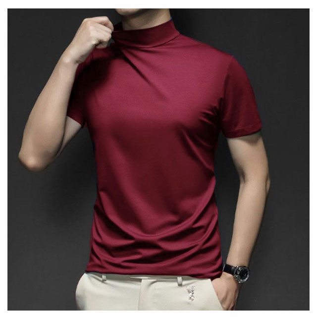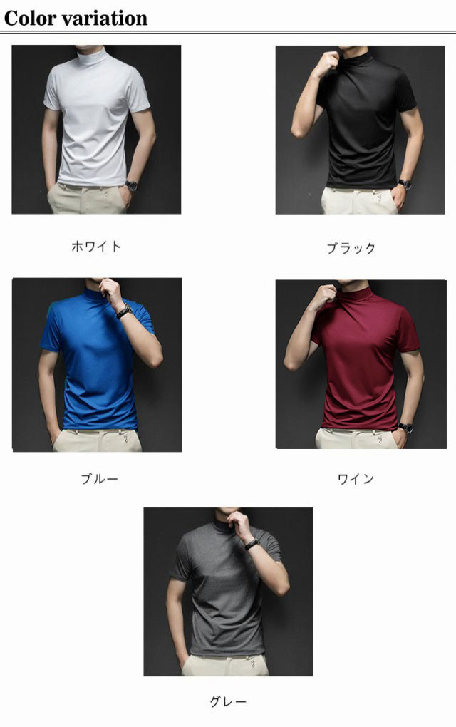 【半袖ハイネックTシャツ】【M-3XL】【5colors】良質なポリエステルを使用したモックネックtシャツ。襟元は首に沿って立ち上がったモックネックにすることで、イマドキ感のある大人の雰囲気を演出してくれます。肌触りが柔らかく着心地がいいので、夏でも爽やかに着られます。男女兼用ユニセックスでお使いいただけます。ゴルフはもちろん、ビジネスやオフィスカジュアルなど様々なシーンで活躍間違いなしです。1枚で着るのはもちろん、セーターやシャツのインナーとして使うのもオススメです。