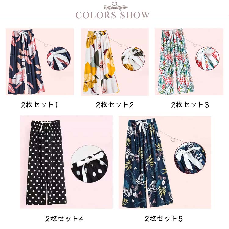 2枚セット一度穿くとやみつきに♪ひんやり素材でサラサラドライキープ、薄手な生地感。春秋はもちろん、夏用のパジャマとしても活躍してくれます。リラックスタイムにぴったり♪通気性がよく涼しい。女性らしいカラフルなカラーと柄がオシャレ。