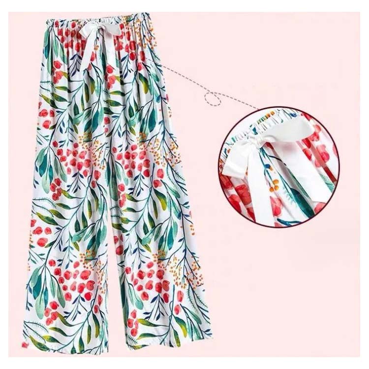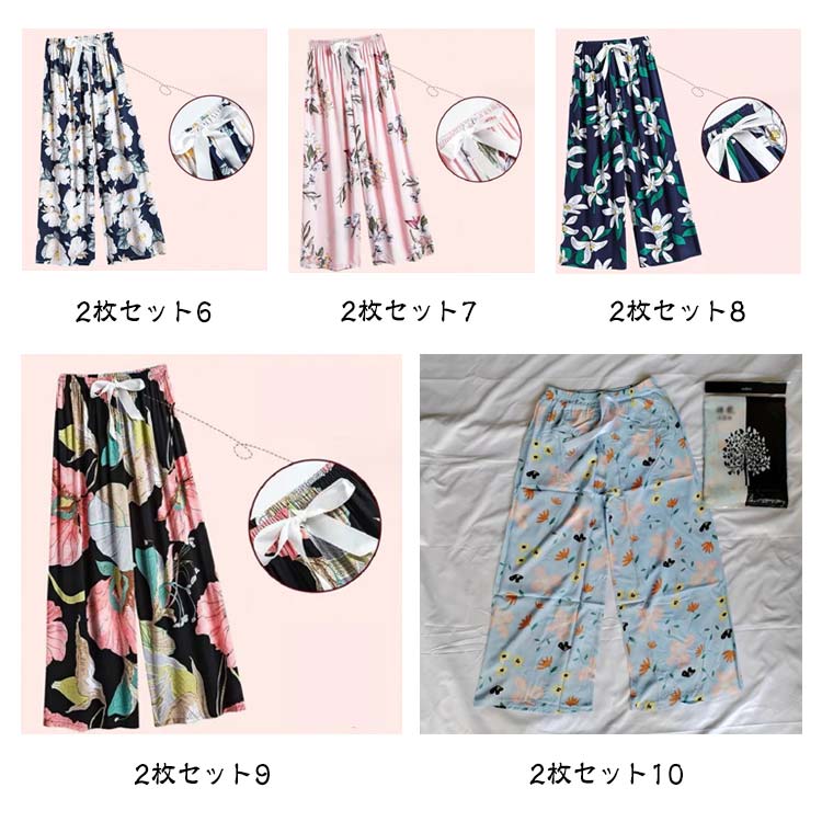 送料無料 ステテコ とろみ リラックスパンツ 2枚セット レディースステテコ 9分丈 ウェストゴム 9分丈 パジャマ 涼しい 夏パンツ 部屋着 ワイドパンツ サラテロパンツ パンツ 冷感 ボトムス 総柄 ゆったり 薄手 ひんやり