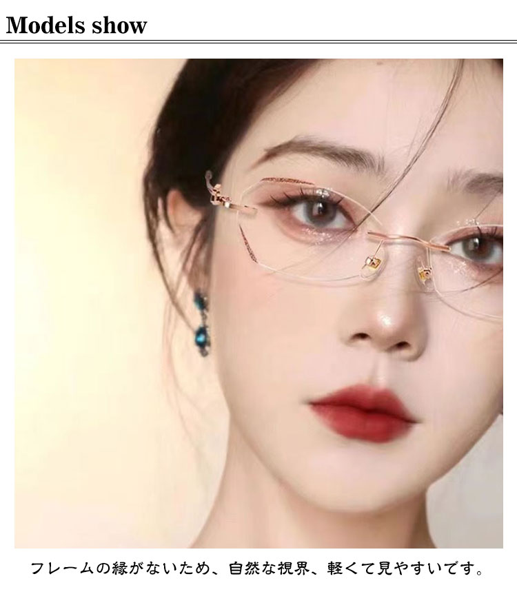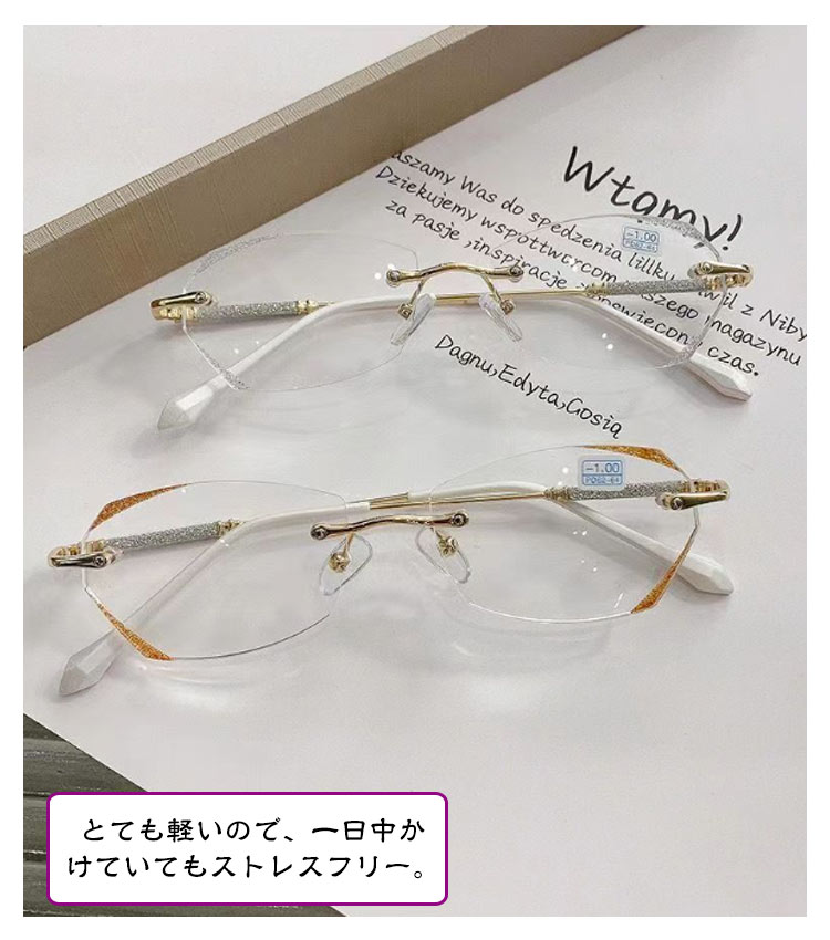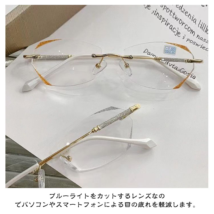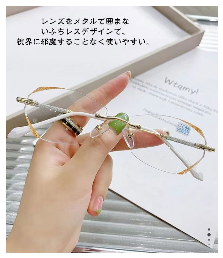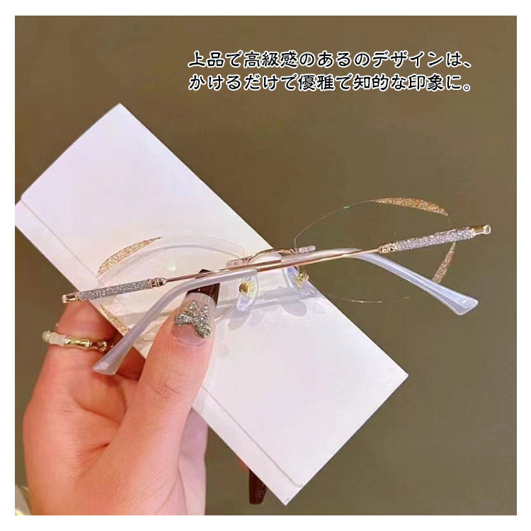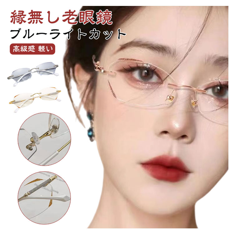 老眼鏡 おしゃれ レディース フチなし ブルーライトカット リーディンググラス シニアグラス 度付き PCメガネ 軽い 軽量 ふちなし 女性 コンパクト かわいい パソコン用メガネ キラキラ 上品 枠がない 母の日 ギフト