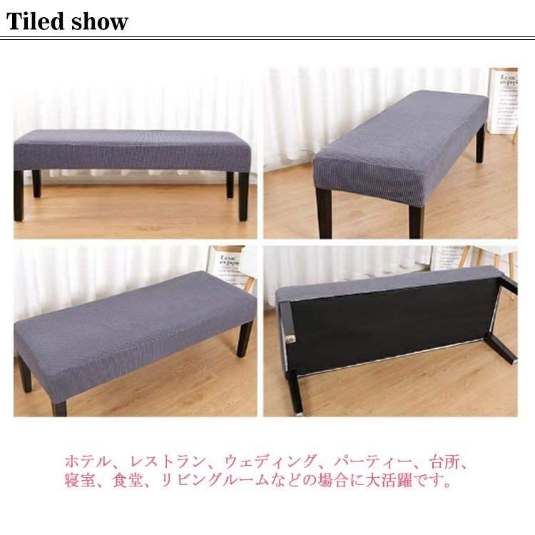 ●伸縮素材縦横に程よく伸縮するストレッチ素材が、ダイニングベンチやロングスツールなどの長椅子にぴったりフィット!柔らかくて通気性良い、丈夫で耐久性のある生地、四季節も通用できます。●取付簡単すっぽり被せて、ベンチの模様替えで、お部屋の雰囲気転換も簡単にできます。カバー裏側に固定するためのゴムが付けるので、カバーが馳み出しにくい。●汚れ防止&キズ防止お子さまの食べこぼし汚れ、ネコちゃんの爪とぎ跡、ヒビ割れ、毛玉などを完璧で隠せます。●お手入れ簡単洗濯機で丸洗い可能、乾きやすく、お手入れもとても便利♪●様々な使用シーンレストランベンチの保護カバーは、レストランを飾り付けて新しい外観にすることができます。ホテル、レストラン、ウェディング、パーティー、台所、寝室、食堂、リビングルームなどの場合に大活躍です。