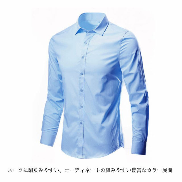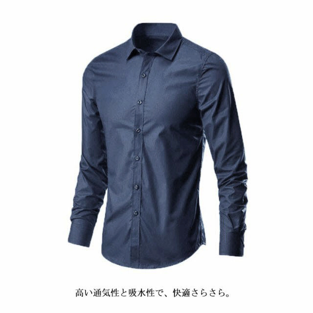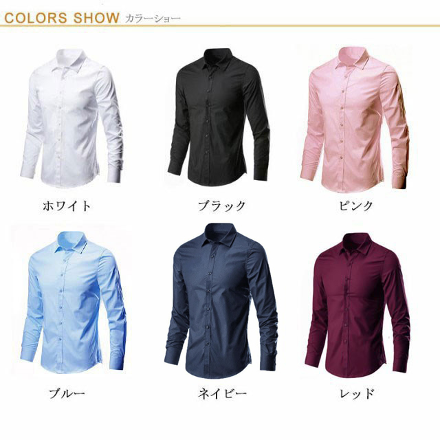 ワイシャツ カラーシャツ 長袖 メンズ 黒 ノーアイロン 紺 スリム Yシャツ ドレスシャツ カッターシャツ ビジネスシャツ 大きいサイズ 黒シャツ カジュアル パーティー 結婚式 二次会 ノンアイロン 形態安定 父の日