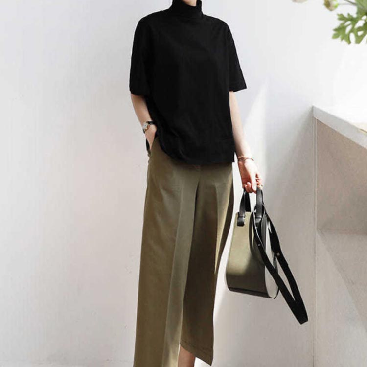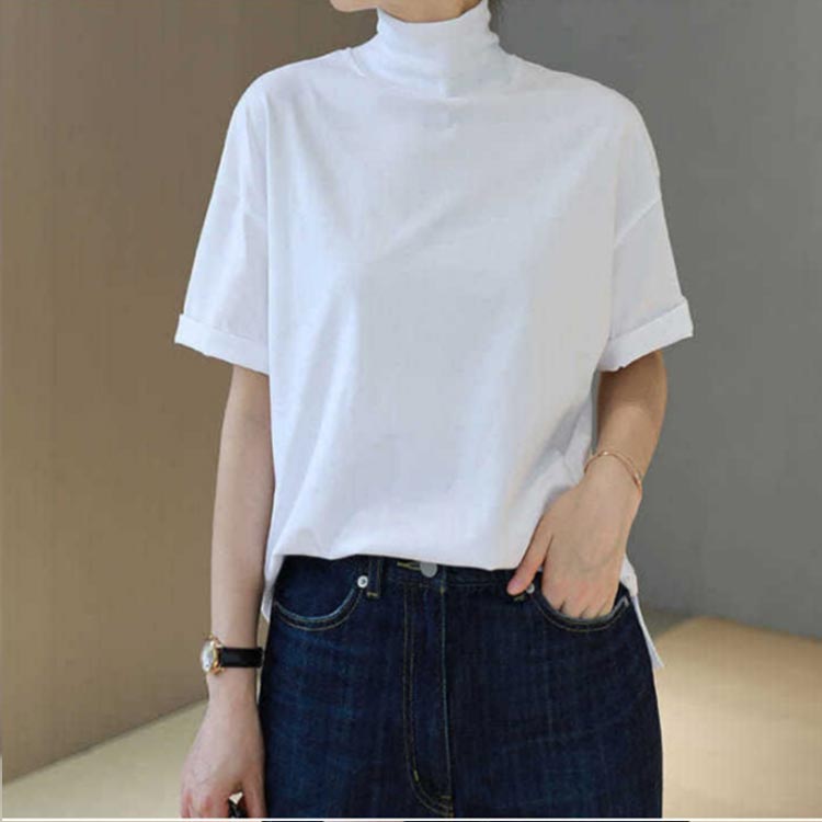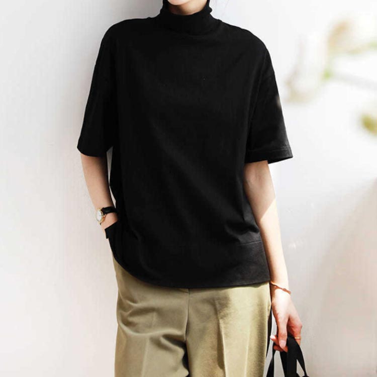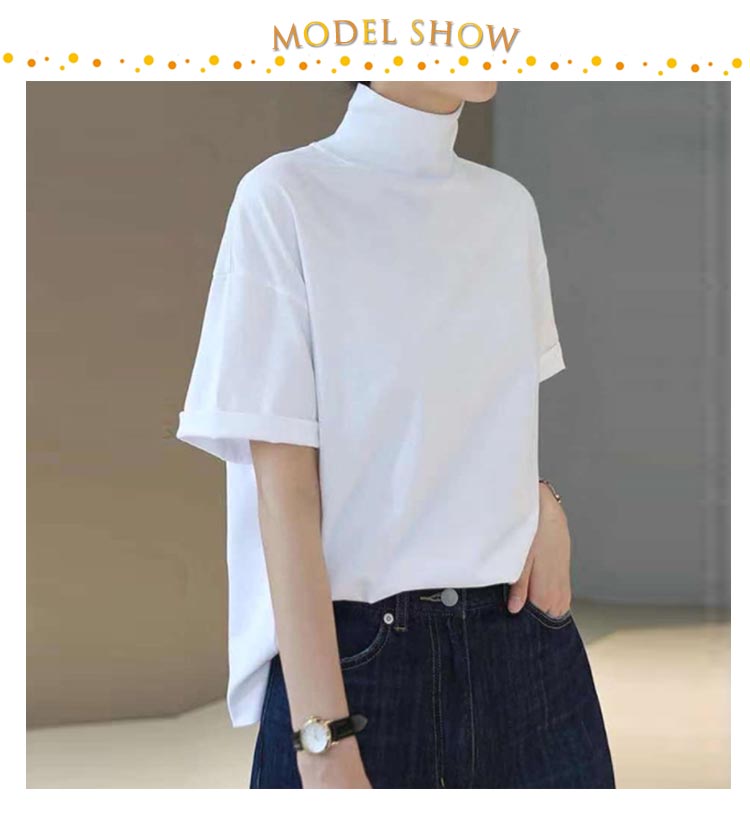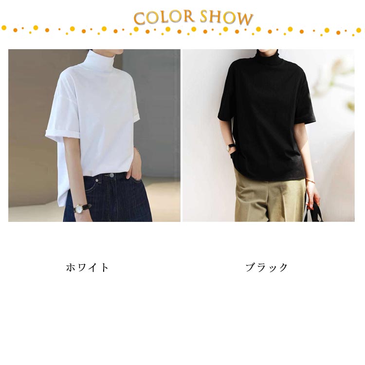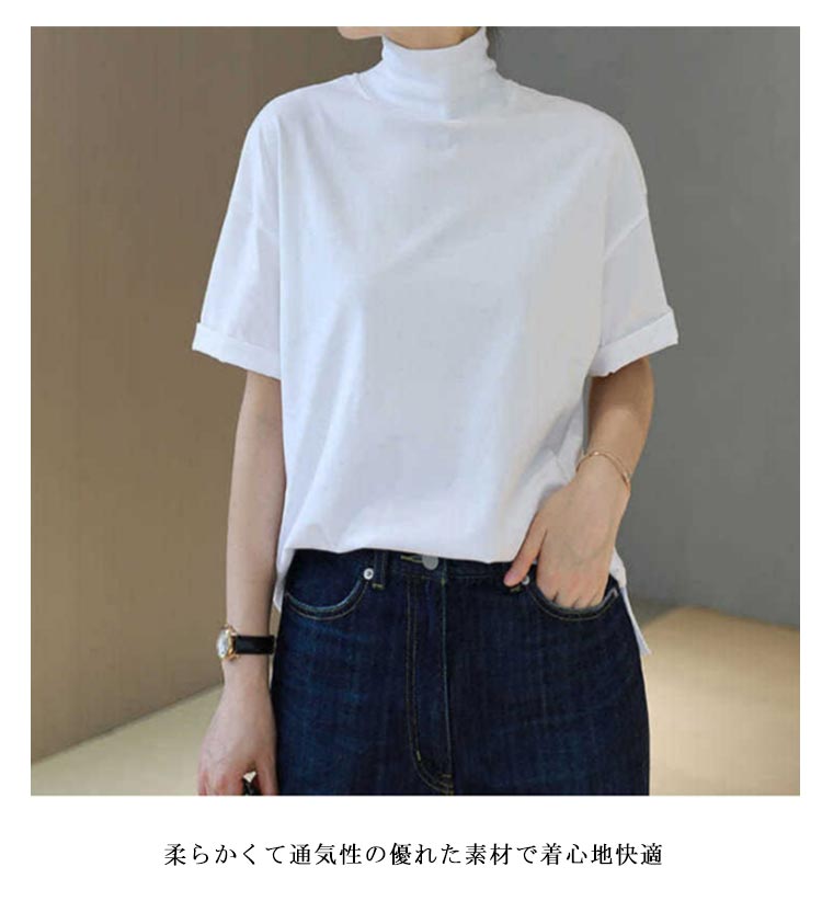 ハイネック 半袖 tシャツ カットソー レディース トップス 半袖tシャツ 半袖シャツ タートルネック 春 夏 秋 Tシャツ ゴルフ 薄手 フィット 無地 大きいサイズ おしゃれ シンプル 春夏 m l 白 黒 韓国 20代 30代 40代 50代