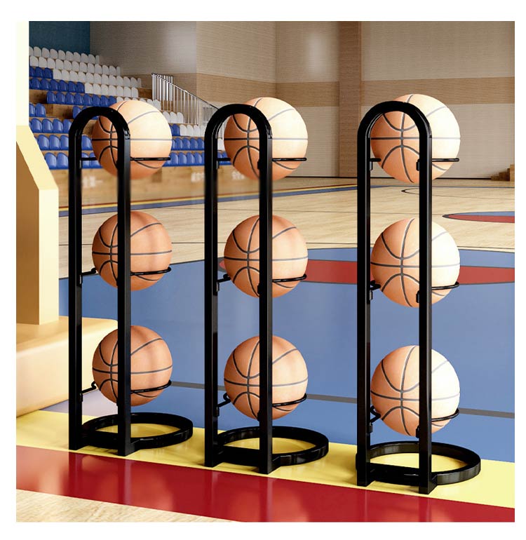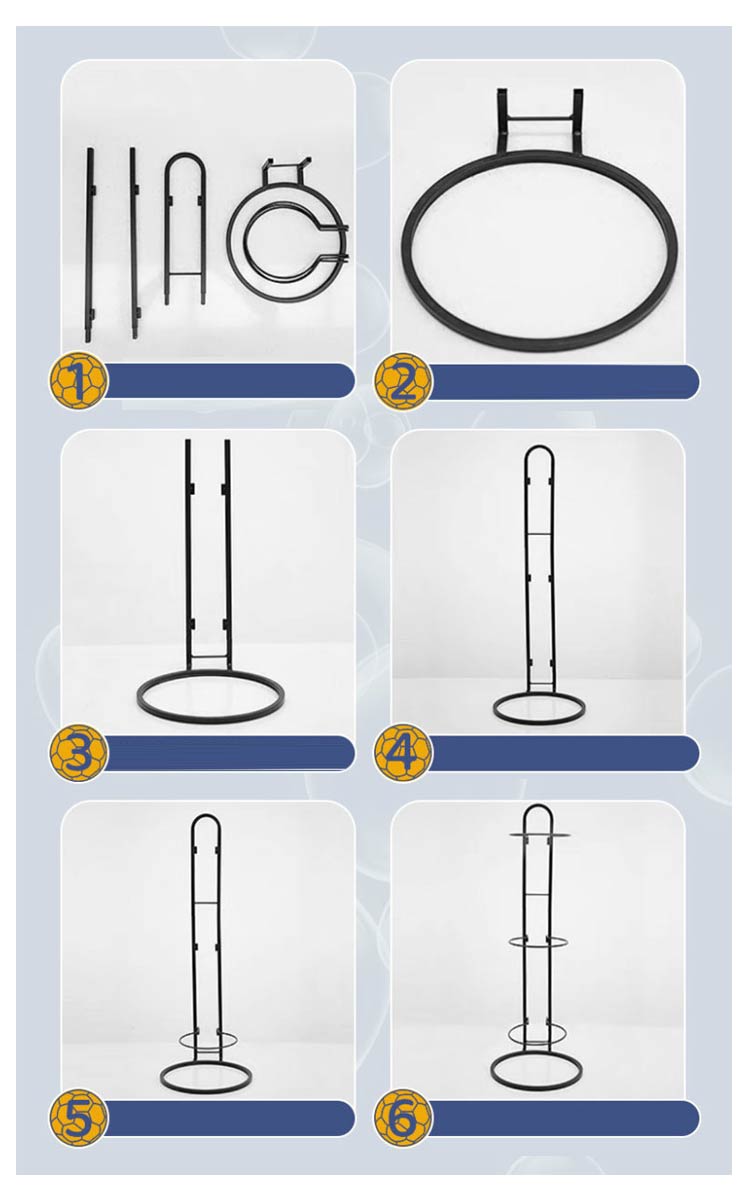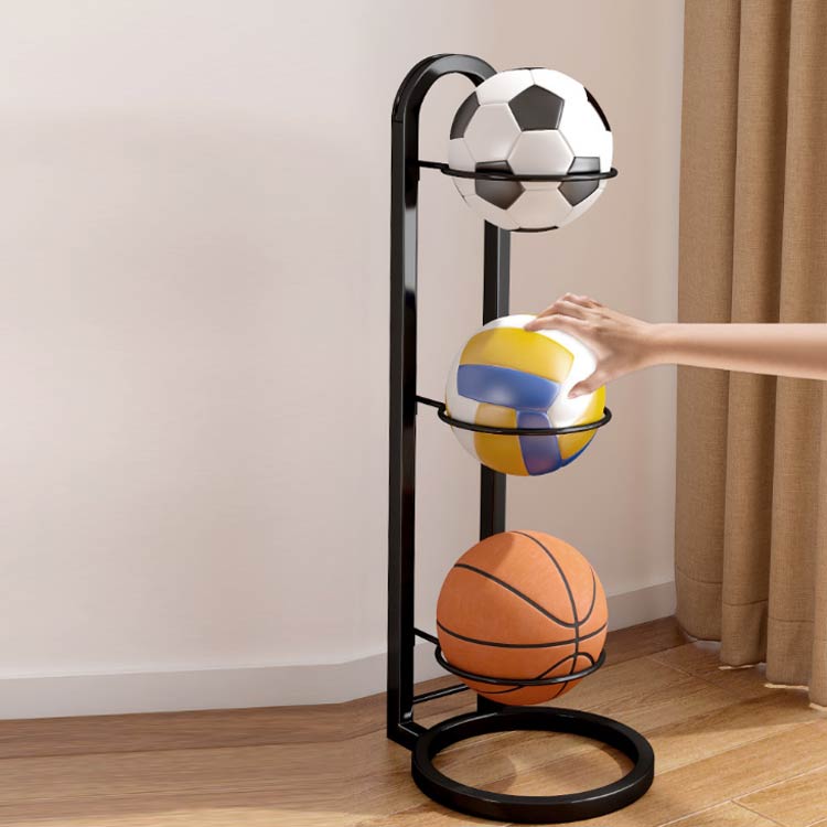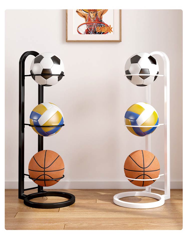 工具不要で誰でも組み立てられるボールスタンド? 丈夫で長く使える厳選カーボンスチール製? バスケットボールやバレーボールなどを転がらずにスッキリ片付け? 狭い玄関でもスリムに置ける縦型収納?