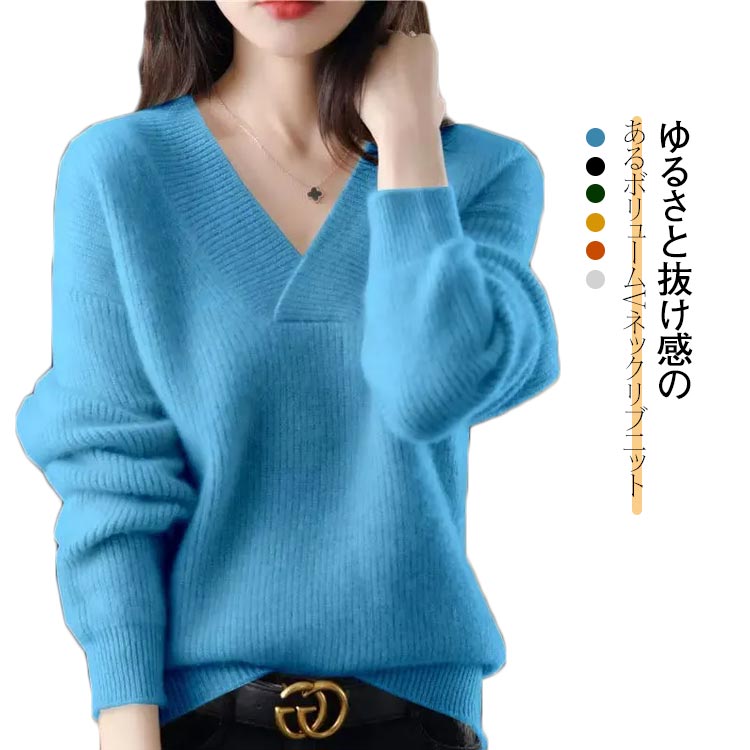 もっちり Vネック ニット トップス レディース ニット セーター 長袖 ニットフェア ドロップショルダー リブニット ニットセーター 秋冬 秋 オフィス 薄手 暖かい 大きいサイズ きれいめ あったか 可愛い 体型カバー 無地 シンプル 大人 女性 送料無料