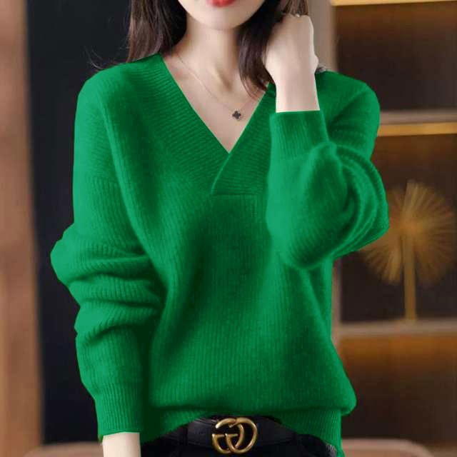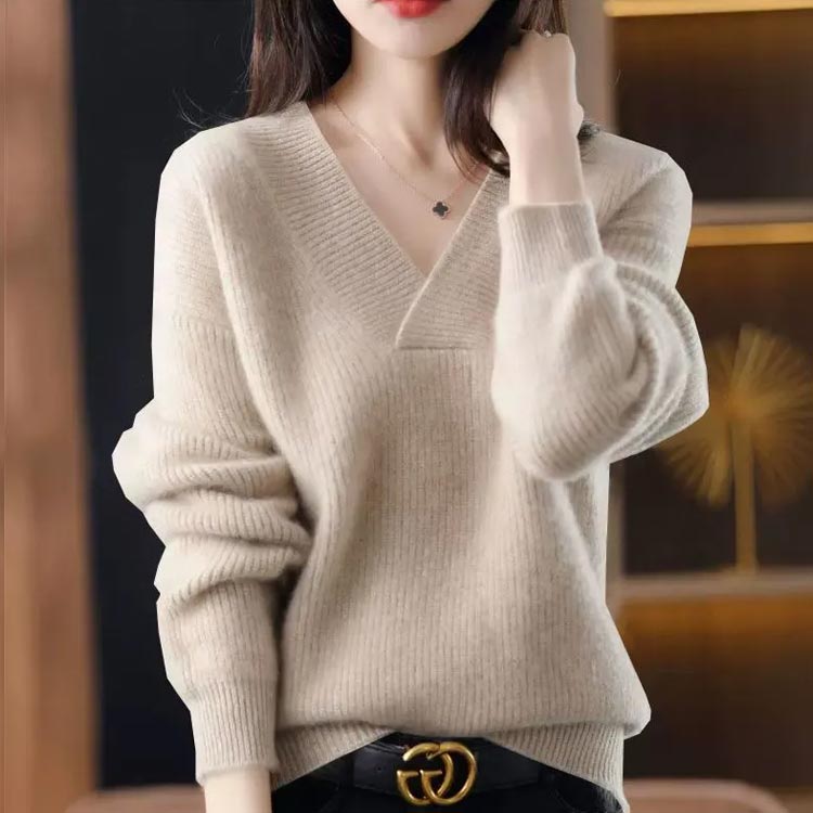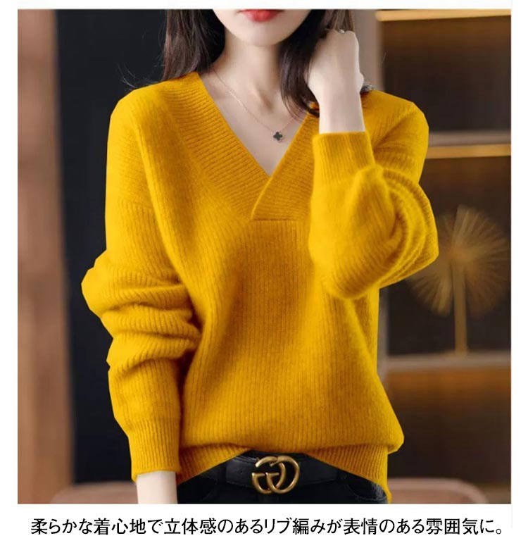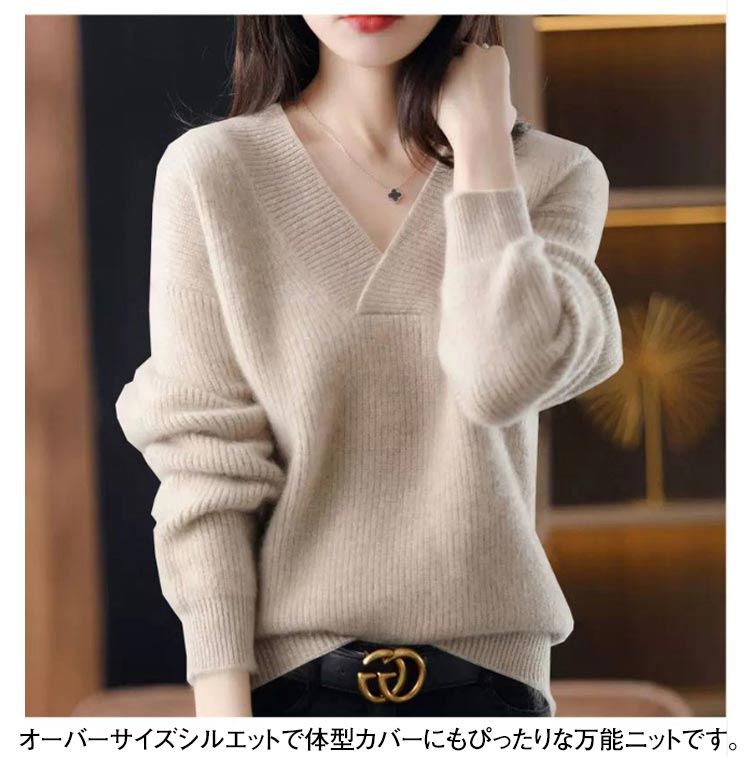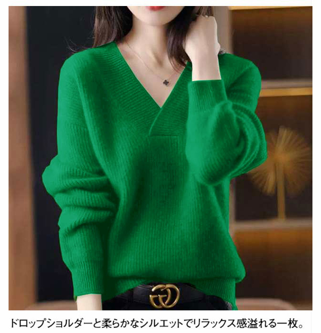 ゆるさと抜け感のあるボリュームVネックリブニット柔らかな風合いながらもしっかりと詰まったニット素材。ドロップショルダーと柔らかなシルエットでリラックス感溢れる一枚。柔らかな着心地で立体感のあるリブ編みが表情のある雰囲気に。ゆとりを持たせたサイズ感が体のラインを拾いにくく、シンプルなデザインですが少しルーズでこなれな雰囲気に仕上げてくれます。オーバーサイズシルエットで体型カバーにもぴったりな万能ニットです。
