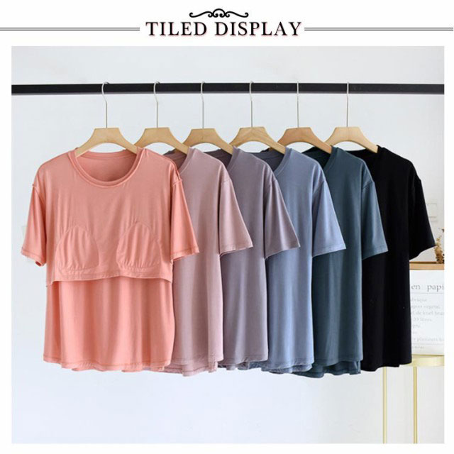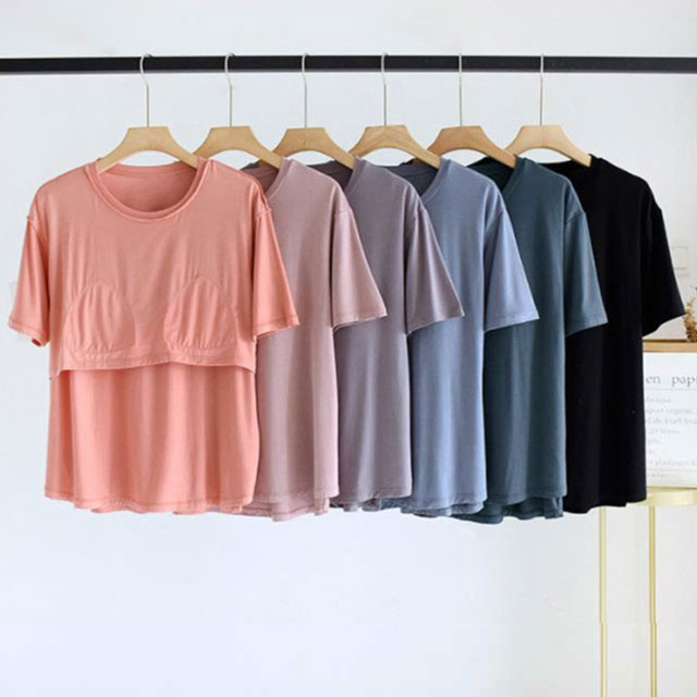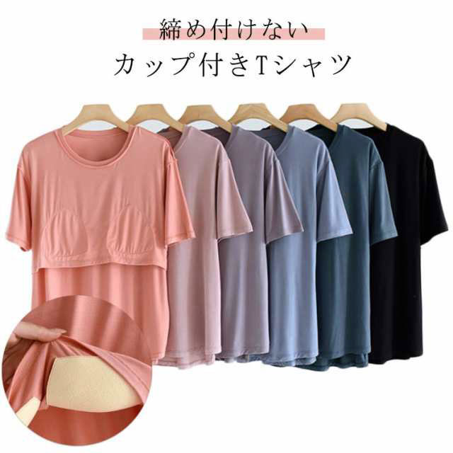 カップ付きTシャツ 半袖 レディース パット付半袖Tシャツ ラウンドネック 柔らかい ルームウェア カップ付き アンダーフリー 大きいサイズ tシャツ ゴムなし 無地 Uネック ブラトップ 締め付けない 前のみ パッドのみ 固定 ナイトブラ ナイトウェア 部屋着 インナー アウター