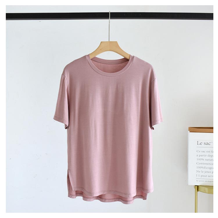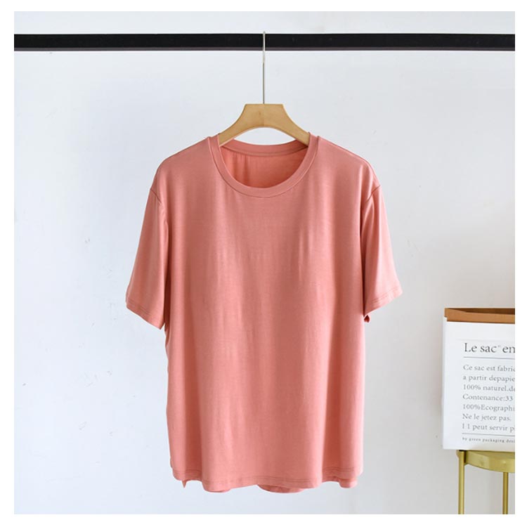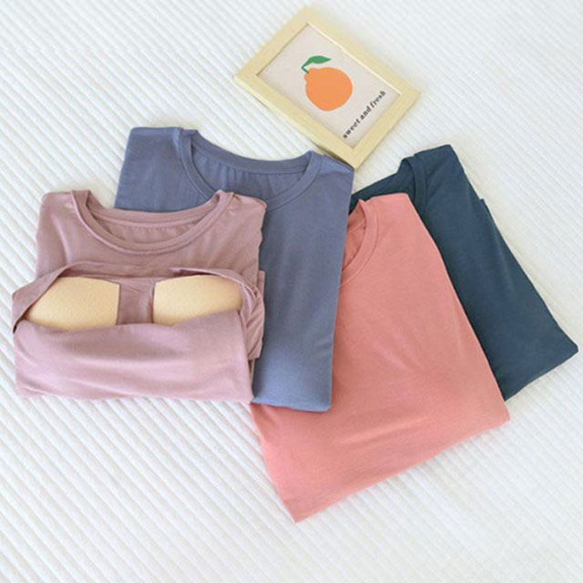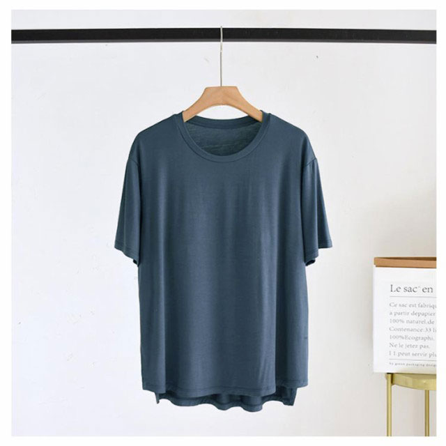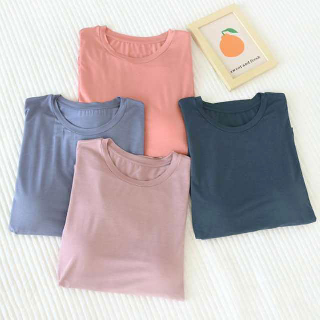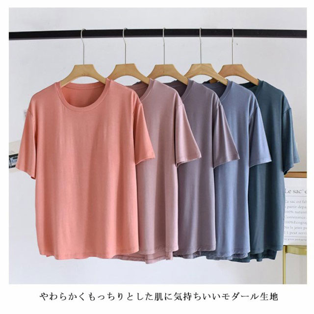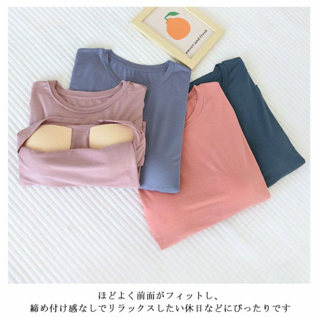 締め付けない カップ付きTシャツやわらかくもっちりとした肌に気持ちいいモダール生地ほどよく前面がフィットし、締め付け感なしでリラックスしたい休日などにぴったりです