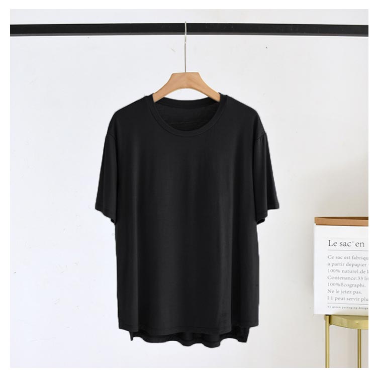 | 締め付けない カップ付きTシャツ やわらかくもっちりとした肌に気持ちいいモダール生地 ほどよく前面がフィットし、締め付け感なしでリラックスしたい休日などにぴったりです | |