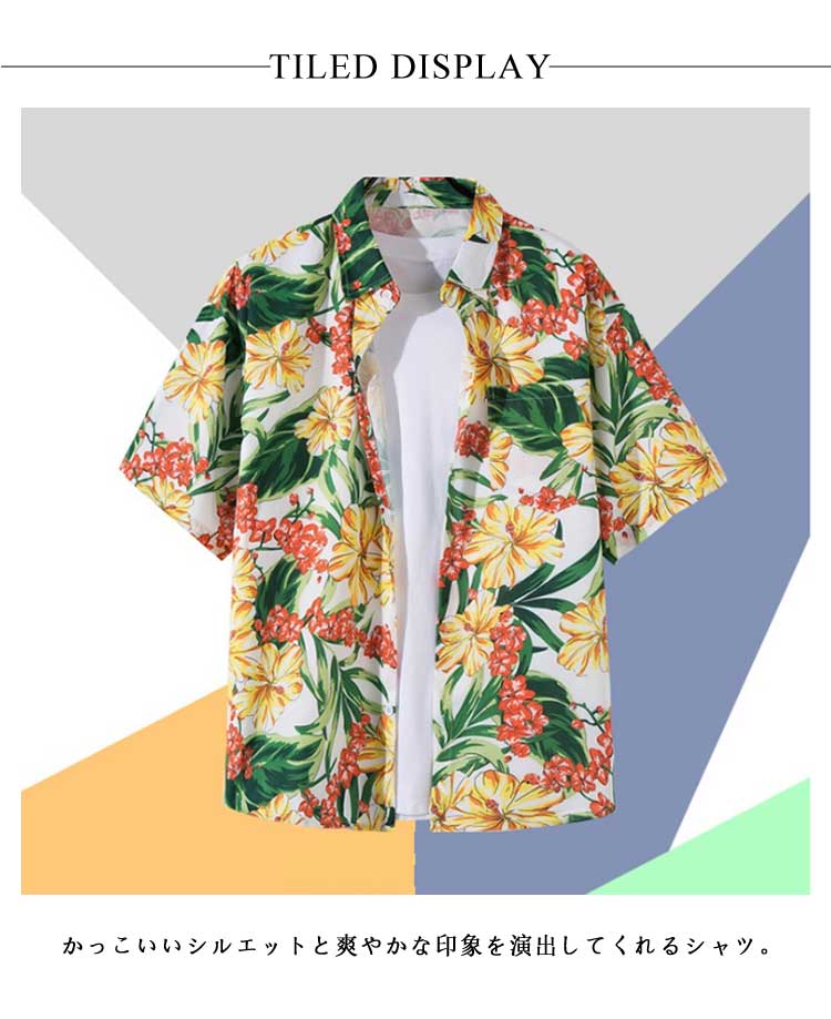 | 全20色柄!リゾート感たっぷりな総柄デザインのメンズ用アロハシャツ。 かっこいいシルエットと爽やかな印象を演出してくれるシャツ。 開襟シャツがより一層リゾート感漂う仕様となっています。 1枚羽織るだけで個性アピールできるカジュアルシャツ。 ポリエステルの涼しげな素材で着心地が良いアロハシャツ? 海遊び、街歩き、旅行などに使えます。 気軽に着用でき、着心地が抜群です。 | |