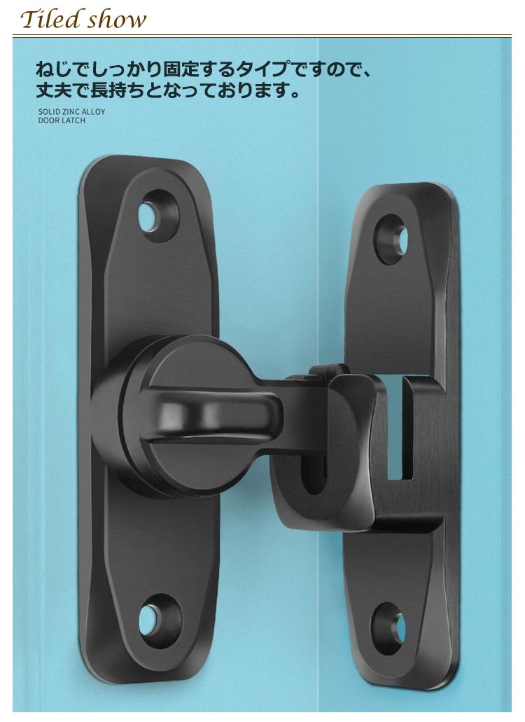 引き戸 鍵 後付け ドアロック 90度/180度 兼用 ドアバックル 亜鉛合金 ドア留め金ロック 後付け 回転式 フリップラッチロック 引き戸用鍵 スライドロック 窓ロック とびらロック 部屋 取り付け簡単 選べる7色