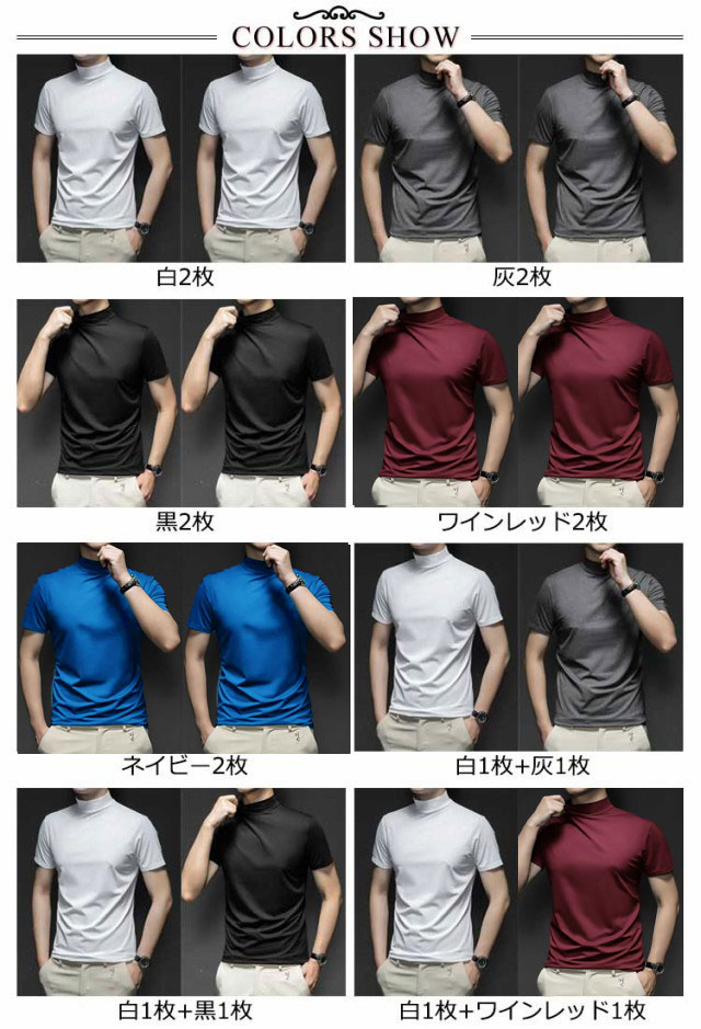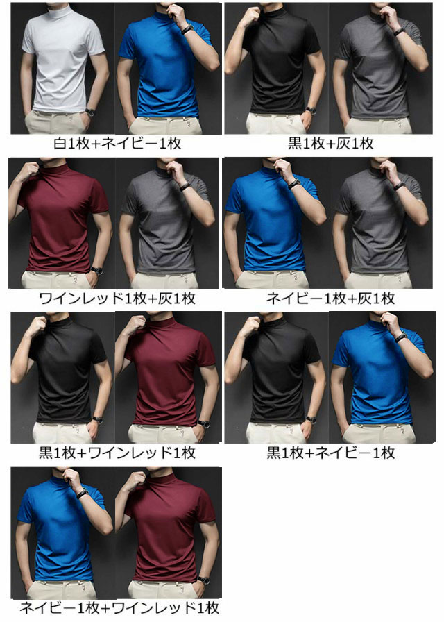 【2枚組】 【送料無料】 ハイネック 半袖 メンズ tシャツ メンズtシャツ 半袖 モックネック ゴルフ ストレッチ 無地 モックネックシャツ ハイネックtシャツ トップス カットソー スポーツウェア ランニング ゴルフ 半袖Tシャツ