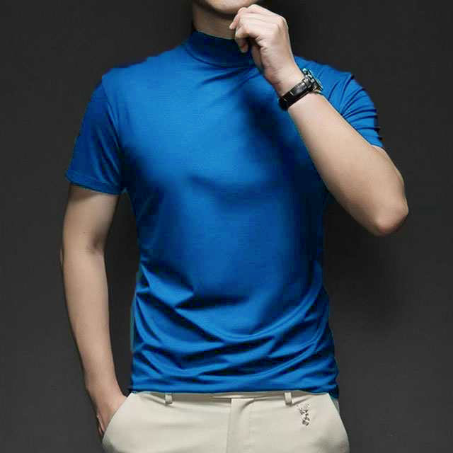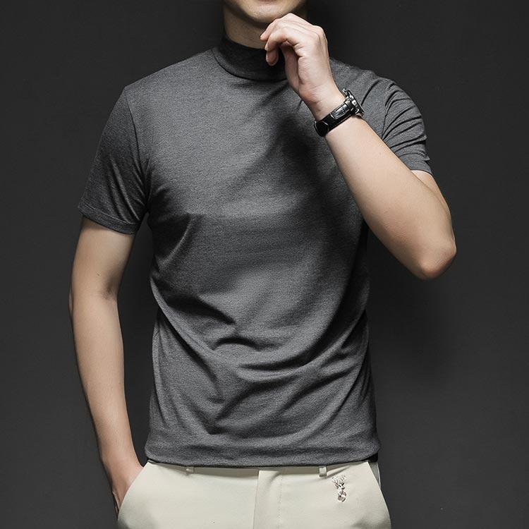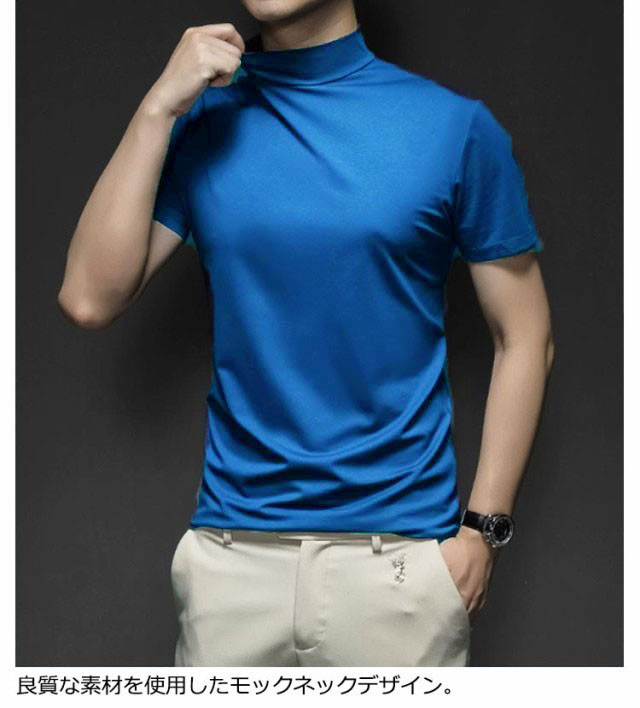 シンプル無地のカジュアルデザイン♪着回ししやすいメンズ用Tシャツです。良質な素材を使用したモックネックデザイン上品な大人っぽい表情なので、大人のきれいめスタイルに。