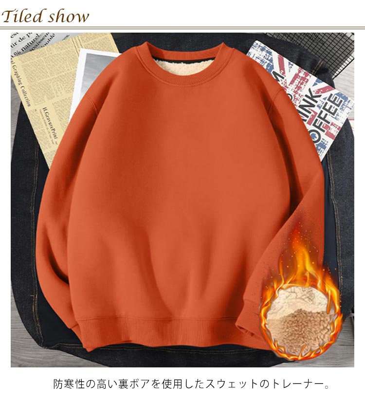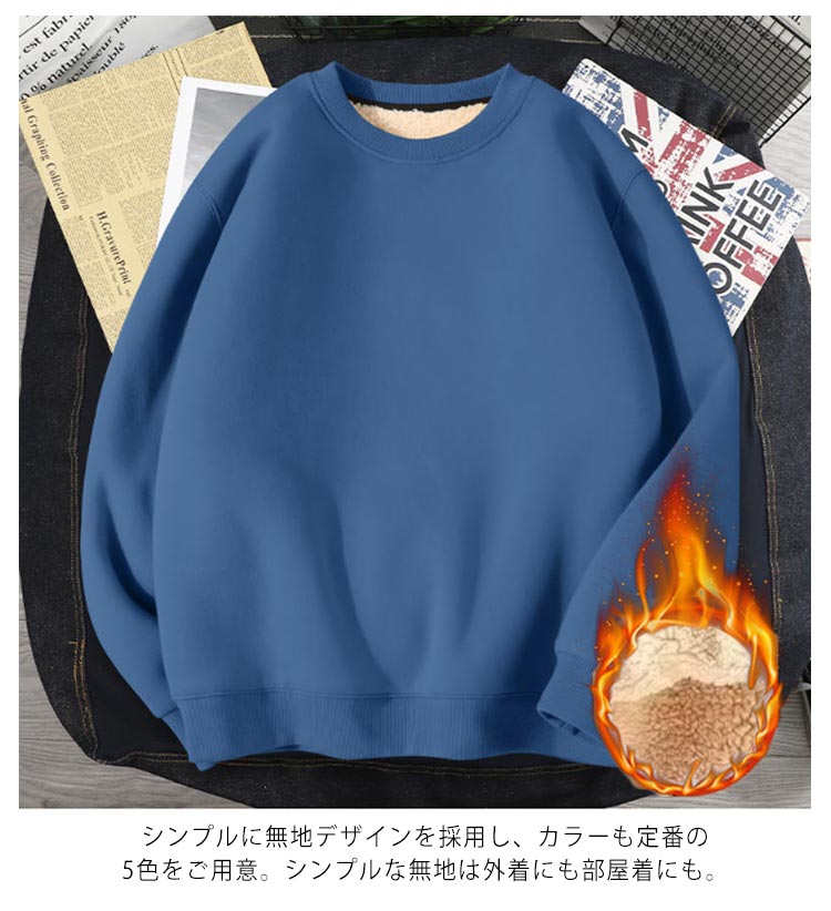 裏ボア スウェット トレーナー メンズ レディース 裏起毛 パーカー 長袖 トップス クルーネック ラウンドネック 大きいサイズ 厚手 シンプル 無地 暖かい あったか 防寒 プルオーバー おしゃれ 男女兼用 ユニセックス 秋 冬 冬服 M-5XL