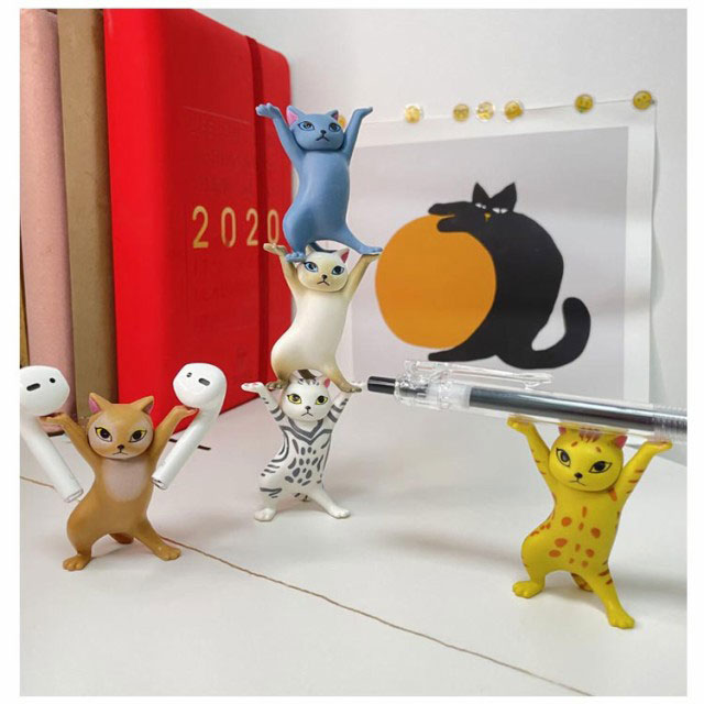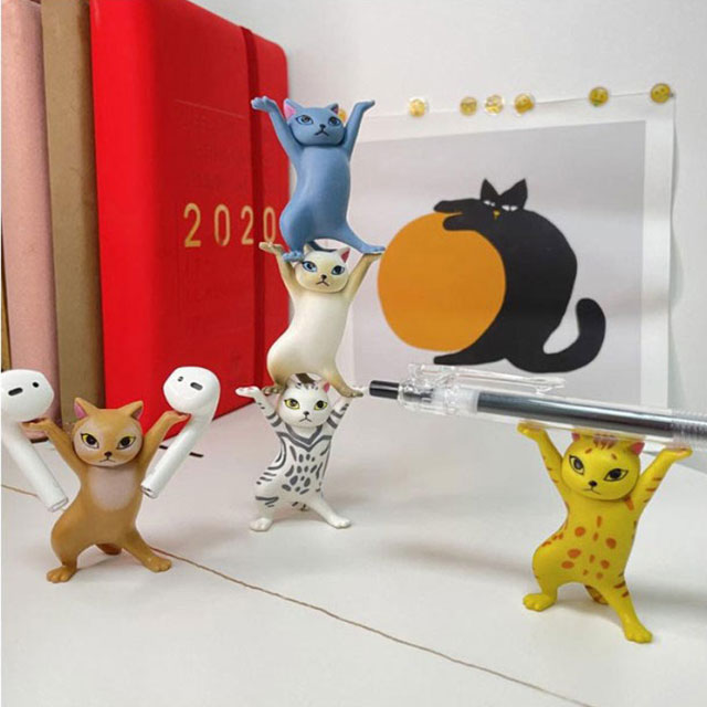 10点セット!猫 置物 小さい おしゃれ プレゼント ネコ 猫のペン立て ぺんおき 猫の置物 モデル ペンホルダー ネコ グッズ 雑貨 ペンたて ペンホルダー ヘッドフォンホルダー 踊る猫 ダンシングキャット