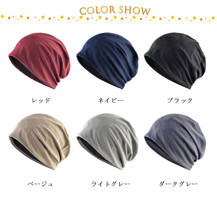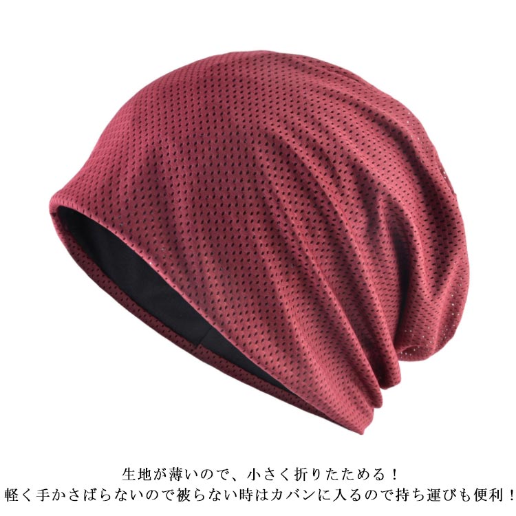 | メッシュ編みで通気性もよく暑い日も快適? 抗がん剤治療、医療用帽子にも最適です。 伸縮性がありますので、様々な頭のサイズにフィットします。 さらに吸水速乾機能に優れた糸を使用しており、春夏のジョッギングなどで汗をかいても吸収されます。 生地が薄いので、小さく折りたためる!軽く手かさばらないので被らない時はカバンに入るので持ち運びも便利! | |