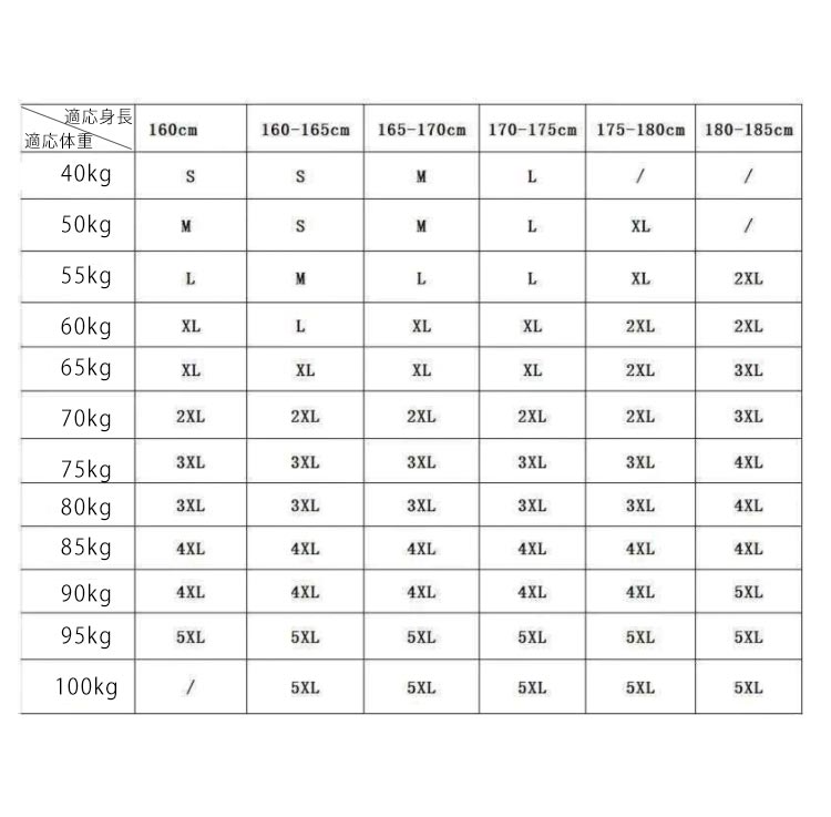 | サイズ | M L XL 2XL 3XL 4XL 5XL 6XL 7XL 8XL |