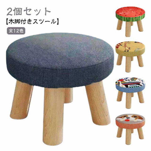 【2個セット】【木脚付きスツール】【全12色】かわいいデザインのロータイプ・ラウンドスツール。学習用の椅子、ゲーム用の椅子、子供用の食事用の椅子など、さまざまな用途があります。ちょっとした椅子としてはもちろん、踏み台にも使える木脚付きの丸椅子ですコロンとした丸い形、素朴な風合いは可愛い存在になりそうです子供イスだけじゃなく、靴を履くときの腰掛にも使えそうです。底面に滑り止め加工がされているので、滑りにくく転倒しにくい設計になっています。