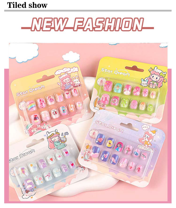 子供用 ネイルシール 貼るだけ 簡単ネイル キッズ 女の子 子ども用 ネイルステッカー 24枚入り(2箱) 粘着テープ式 かわいい ネイルアート ネイルパーツ ネイルチップ こどもネイル 送料無料