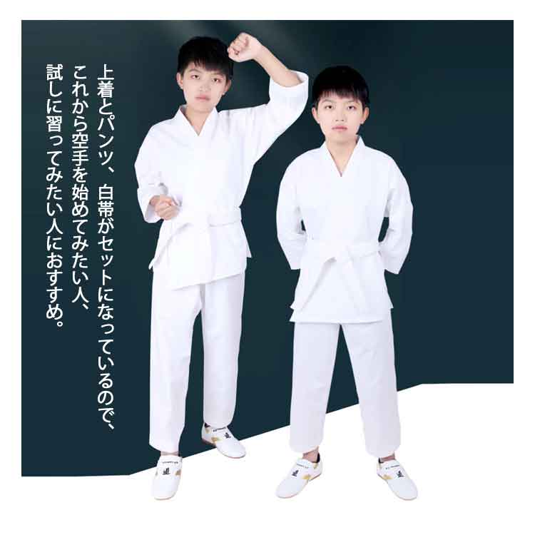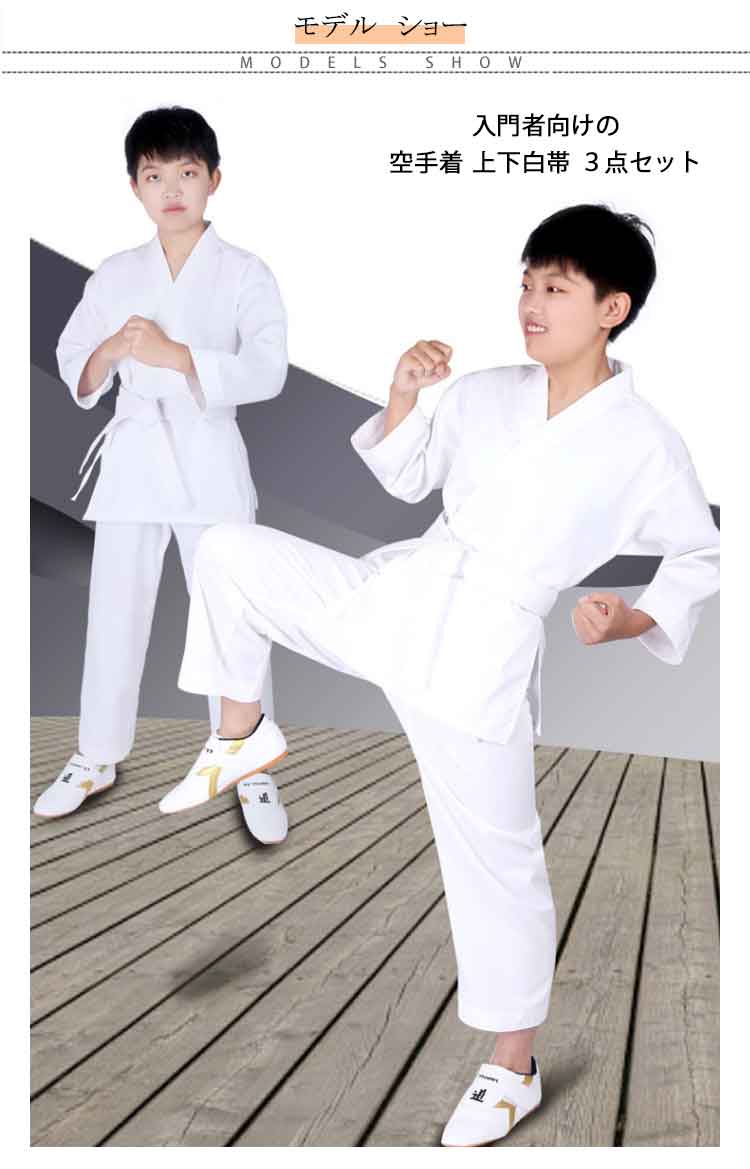 空手着 3点セット 子供 大人 ジュニア 100-180cm 空手衣 白帯 上下+帯 セット 空手 空手道着 初心者 入門者向け 男女兼用 空手スーツ 子ども 授業用 道着 練習用 合気道 柔道授業 柔道着 道衣 中学生 フルコンタクト