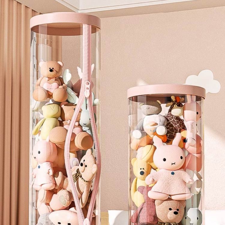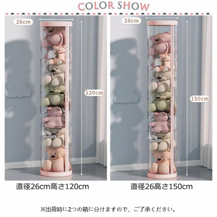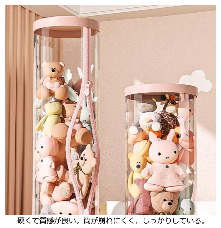 ぬいぐるみ収納ケース ジッパー付き ぬいぐるみ収納 円柱形 ぬいぐるみ収納 ケース 透明 ぬいぐるみ収納桶 直径26cm/高さ120cm/150cm 大容量 陳列ケース 防塵 展示ボックス ぬいぐるみ収納ボックス 収納ケース ファスナー付き 取り出しやすい