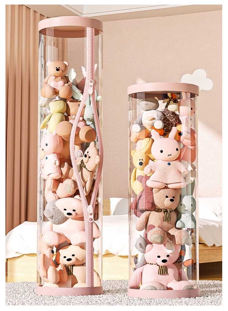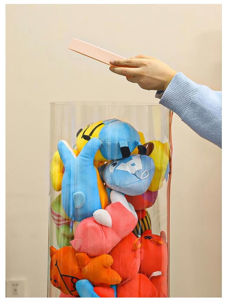 | 直径26cm/高さ120cm/150cm 透明?防塵ジッパー付きぬいぐるみが収納できるディスプレイケース ふたが付いており、ほこりや汚れの付着を防ぐ ファスナー付きで取り出しやすいのでお子様のお片付けにピッタリ 硬くて質感が良い。筒が崩れにくく、しっかりしている。 | |