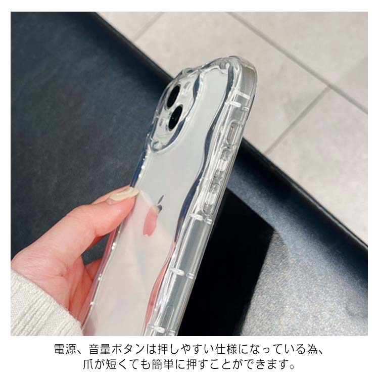 電源、音量ボタンは押しやすい仕様になっている為、爪が短くても簡単に押すことができます。いまSNSで話題の可愛いiPhoneケースです。流行りのウェーブのようなうねうねフレームアイフォンケース。やわらかいTPU素材のソフトケースで衝撃を吸収しやすく着脱が楽ちん。ちょっとしたプレゼントなどにも喜ばれます。