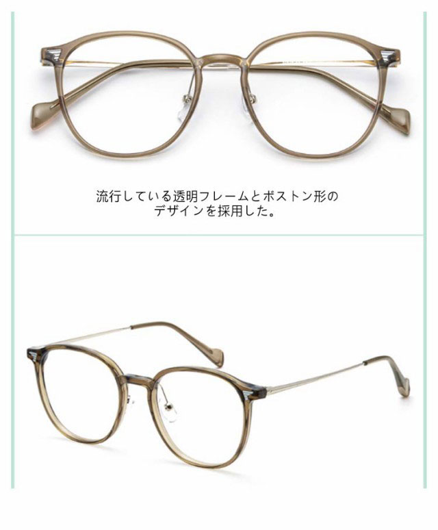 | 【ブルーライトカット】【度なし/度付きメガネ】【4colors】 パソコンやスマホなどのデジタルデバイスから発生するブルーライトをカットできます。 日常生活において、ブルーライト軽減のpcメガネとして利用できます。 超軽量素材を採用して長時間使ってもストレスなし、疲れにくいです。 流行している透明フレームとボストン形のデザインを採用した。 眼鏡は日本人の顔幅を合わせて設計される丸いファッションメガネです。 | |