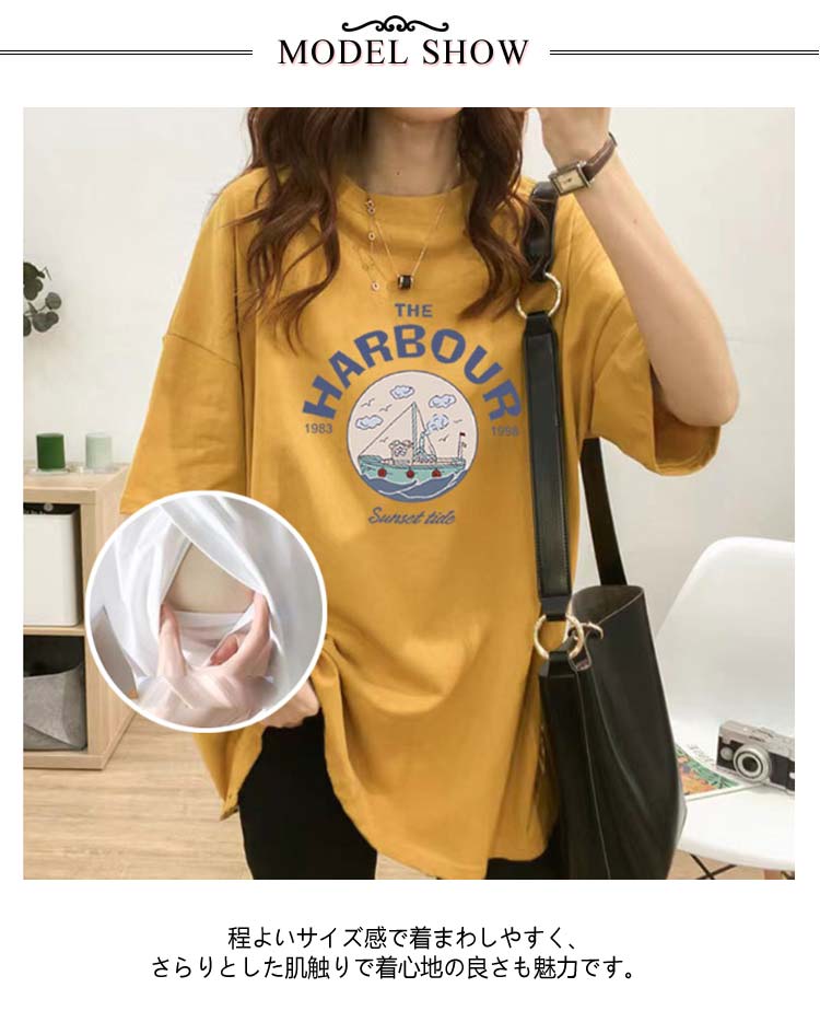 授乳服 マタニティ Tシャツ 半袖 授乳 チュニック 授乳口付き ビッグTシャツ マタニティトップス カットソー 母親 服装 妊娠 出産 産前 産後 夏