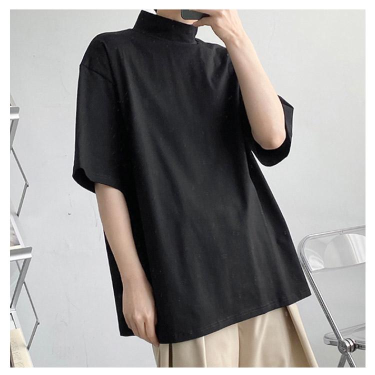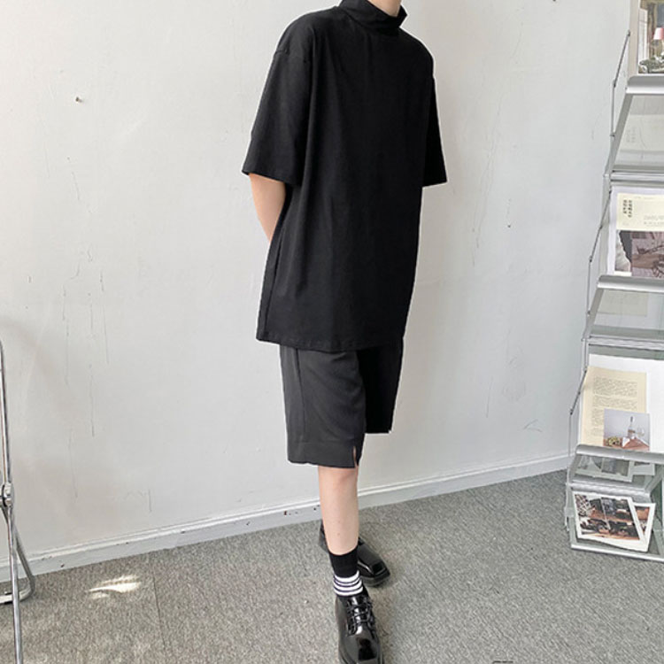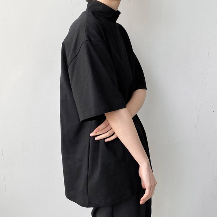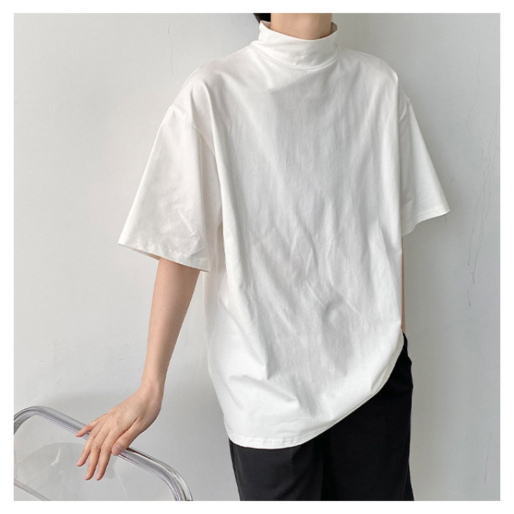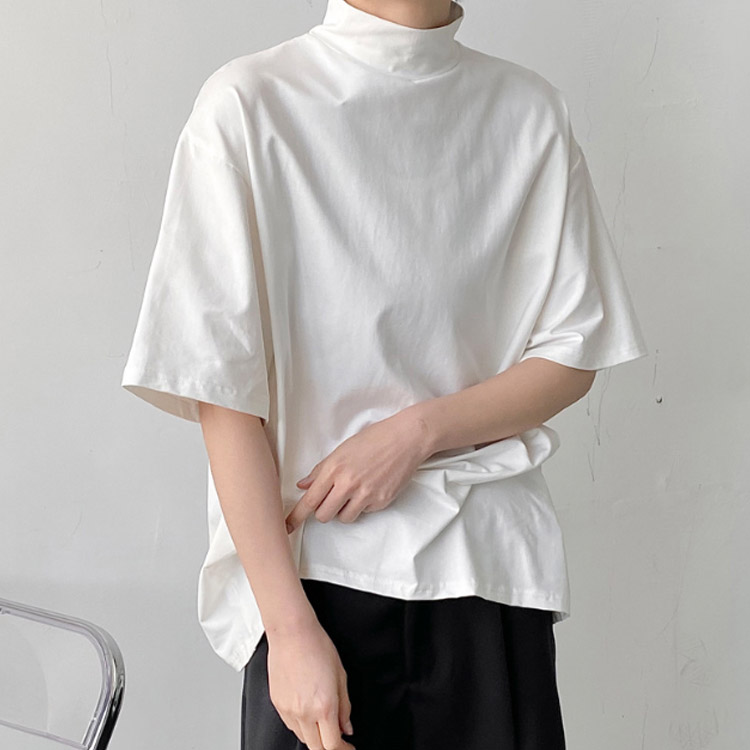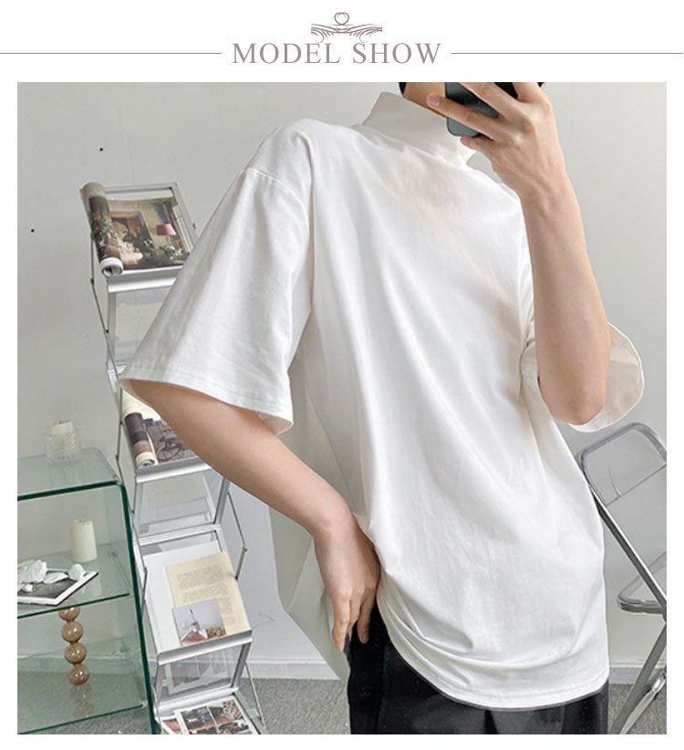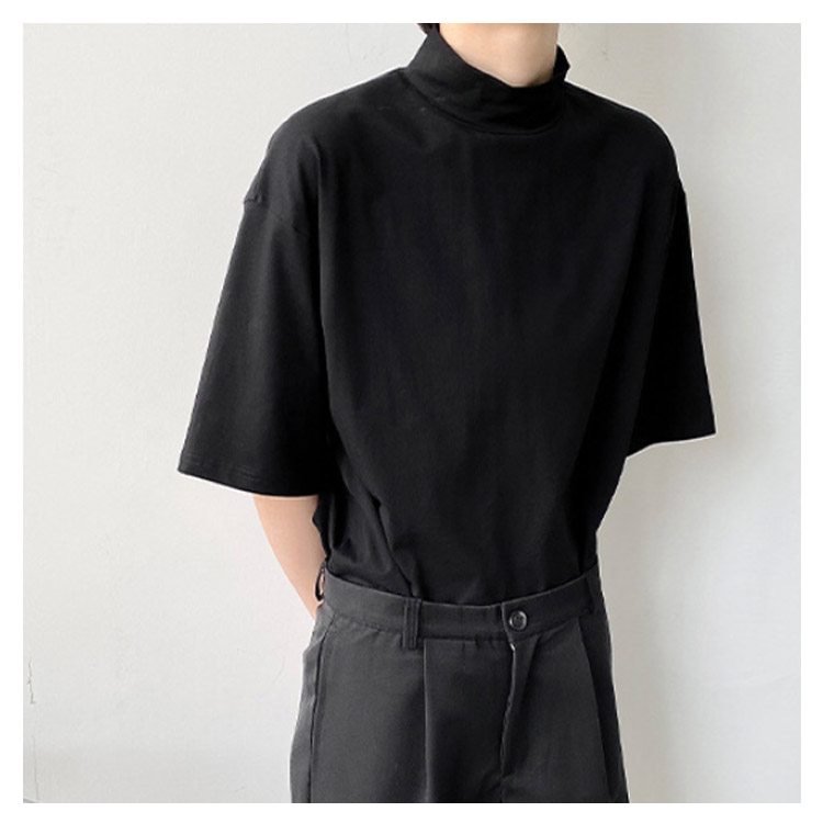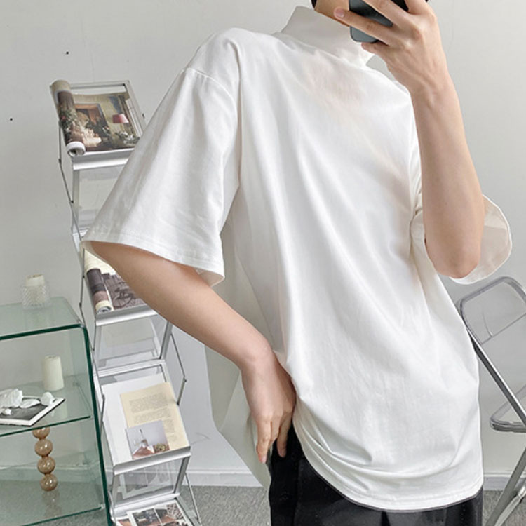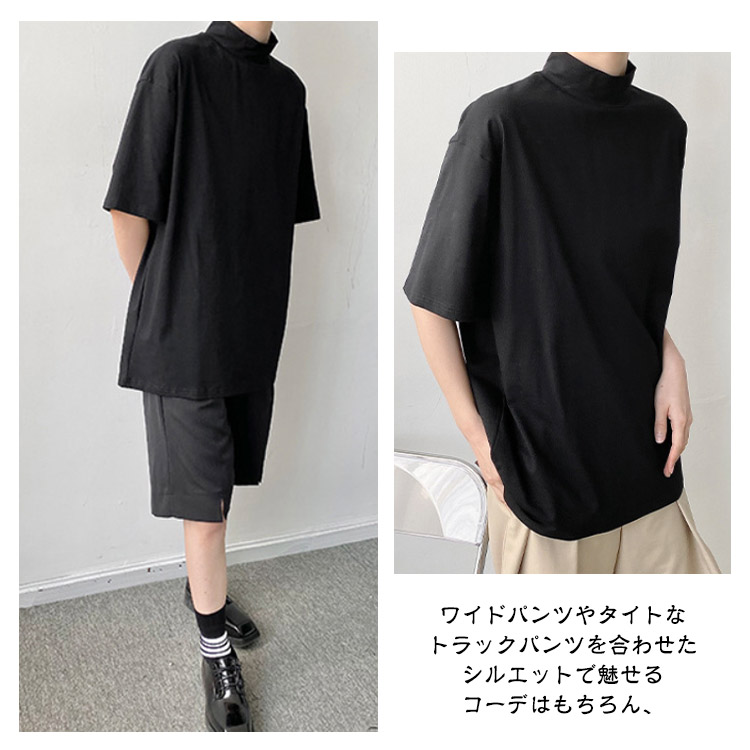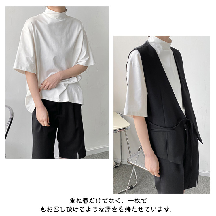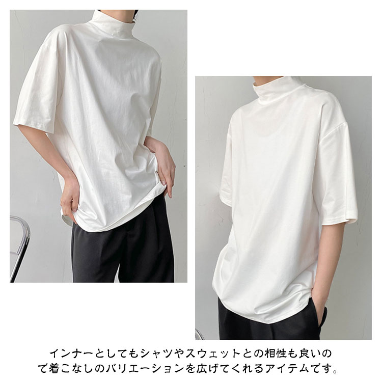 tシャツ ハイネック 五分袖 半袖 春 夏 秋 Tシャツ カットソー メンズ タートルネック tシャツ 黒 白 ドロップショルダー ゆったり モックネック トップス オーバーサイズ tシャツ ビッグシルエット tシャツ カジュアル 無地 シンプル ストリート系