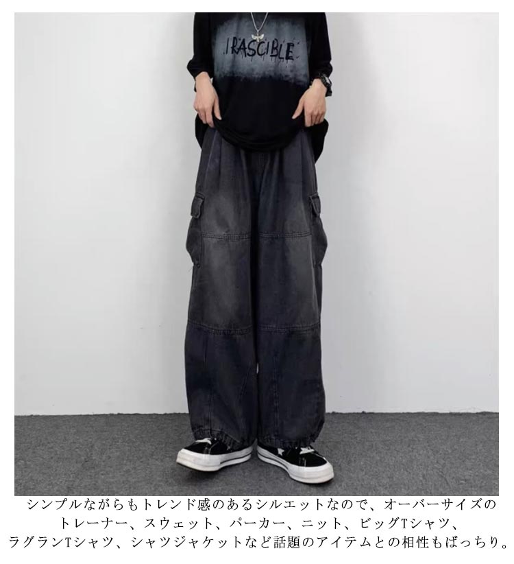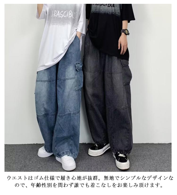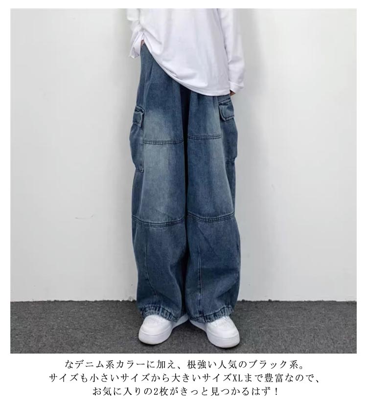 ゆるとボリューム感のあるバルーンシルエットで体型カバーしてくれ、全体的にほっそり見えるのもうれしい!ウエストはゴム仕様で履き心地が抜群。無地でシンプルなデザインなので、年齢性別を問わず誰でも着こなしをお楽しみ頂けます。オーバーシャツなどトップスインコーデや着丈の短いトップスと合わせてスニーカーを履くだけでこなれコーデの出来上がり。シンプルながらもトレンド感のあるシルエットなので、オーバーサイズのトレーナー、スウェット、パーカー、ニット、ビッグTシャツ、ラグランTシャツ、シャツジャケットなど話題のアイテムとの相性もばっちり。なデニム系カラーに加え、根強い人気のブラック系。サイズも小さいサイズから大きいサイズXLまで豊富なので、お気に入りの2枚がきっと見つかるはず!