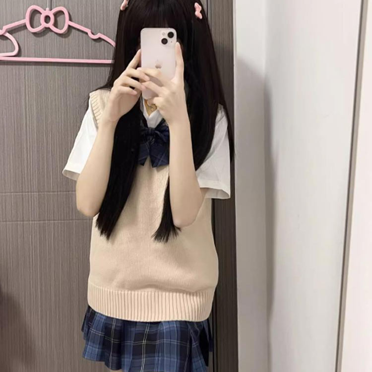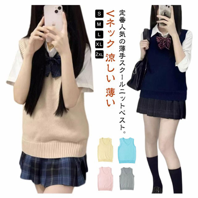 夏用 スクールベスト 薄い 涼しい ニットベスト 制服 無地 Vネック レディース 定番 スクール ベスト 高校生 中学生 女子高生 韓国制服 定番 黒 紺 ベージュ グレー 制服アレンジ コスチューム 学生服 通学 イベント