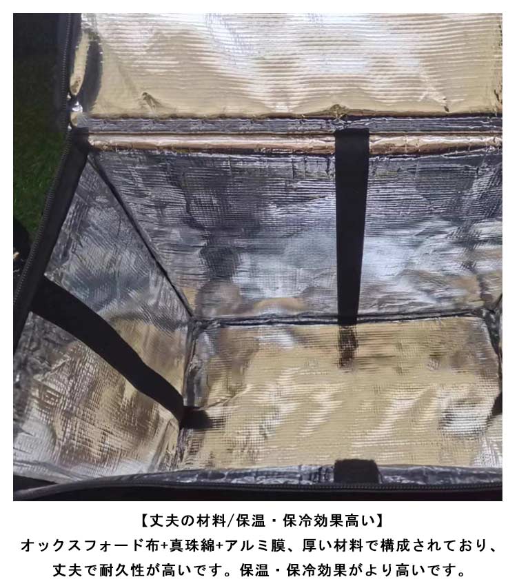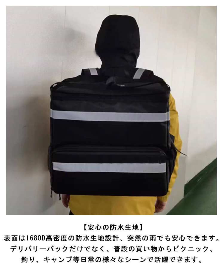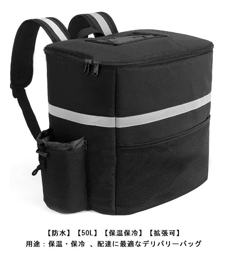 【防水】【50L】【保温保冷】【拡張可】用途:保温・保冷 、配達に最適なデリバリーバッグ【安心の防水生地】表面は1680D高密度の防水生地設計、突然の雨でも安心できます。デリバリーバックだけでな普段の買い物からピクニック、釣り、キャンプ等日常の様々なシーンで活躍できます。【丈夫の材料/保温・保冷効果高い】オックスフォード布+真珠綿+アルミ膜、厚い材料で構成されており、丈夫で耐久性が高いです。保温・保冷効果がより高いです。【2枚の仕切り板/ピザも入れる大容量】2枚の仕切り板付き、冷たい飲み物と温かい食べ物を隔てることができ、合理的に空間を区分できます。下の方は容量を拡充できる袋を設計して、50Lの大容量に達します。 。