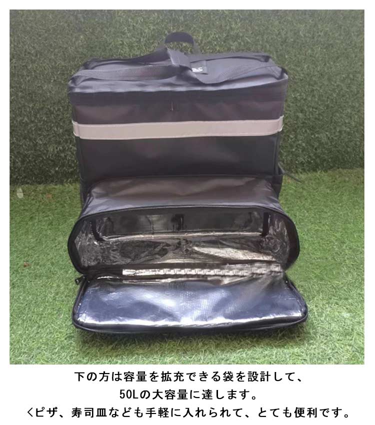 デリバリーバッグ 出前館 ウーバーイーツ 保温 保冷 フード デリバリー バッグ 防水 配達バッグ 50L 保温保冷 ピザ 寿司入り 保温ピザバッグ 拡張可 耐荷重 仕切り板2枚 折りたたみ 配達用 大容量 Uber Eats ウバック リュック カバン バックパック
