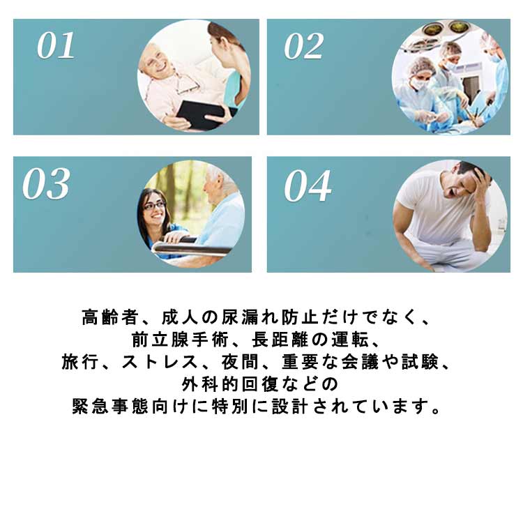 サラッと快適!尿漏れ防止のお悩み解決失禁パンツです。高吸水性の失禁パッドを内蔵し、中等度から重度の失禁に優れた漏れ保護を提供できます。非常に柔らかく通気性のある綿で作られ、伸縮性が高く、変形することなく伸ばすことができます。パッド部の4層吸水構造でちょっとした尿漏れが心配な方も安心。失禁ショーツは再利用可能で、手洗いあるいは洗濯機で洗って乾かすことができ、お手入れが簡単です。いつも清潔・快適、ゆったりウエスト仕様。高齢者、成人の尿漏れ防止だけでなく、前立腺手術、長距離の運転、旅行、ストレス、夜間、重要な会議や試験、外科的回復などの緊急事態向けに特別に設計されています。