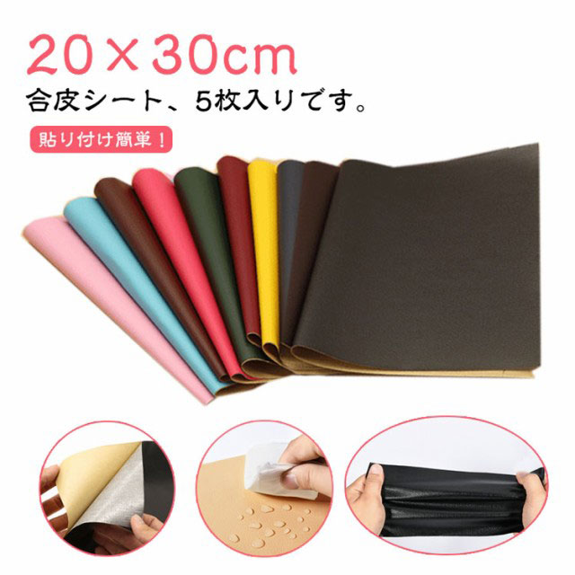 合皮補修シート 合皮 補修シート 5枚入り 20×30cm ソファー補修 レザー 生地 バイクシート補修 テープ 補修シート 貼るレザー シールタイプ フェイクレザー生地 ソファ チェア 椅子用 リメイクシート 破れ 裂け 貼るだけ 防水 車 シートカバー 財布 バッグ 修理 修理