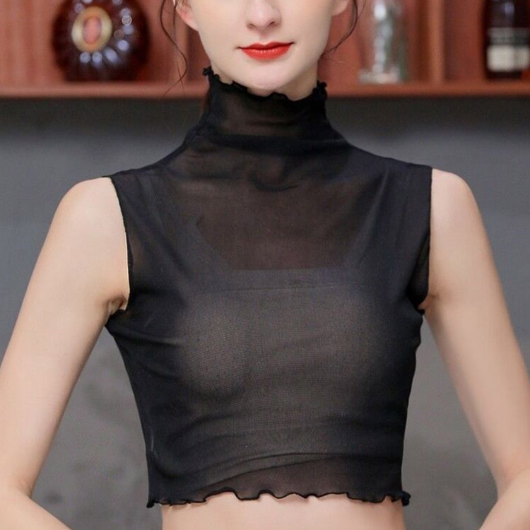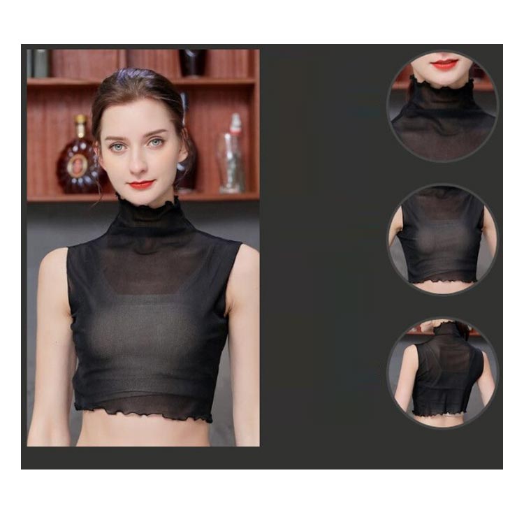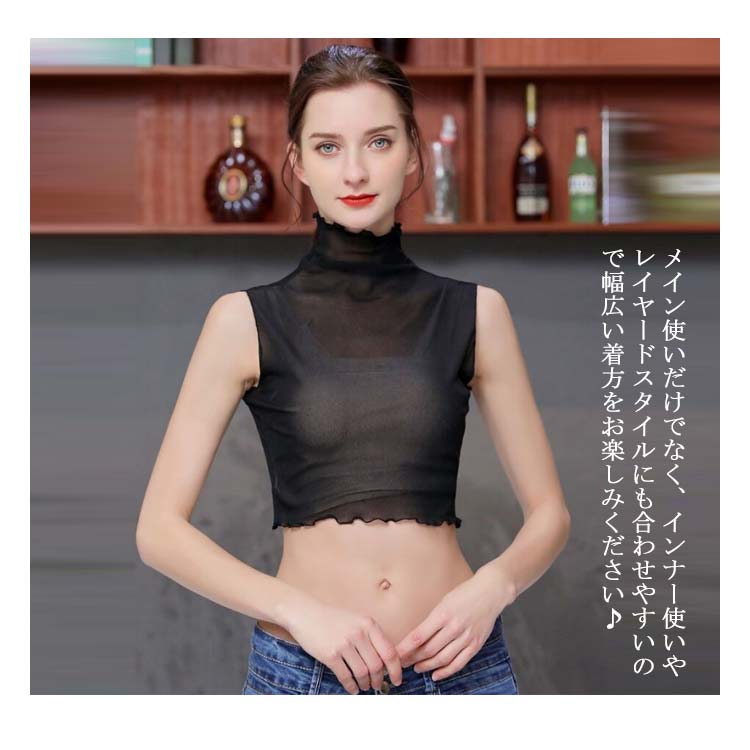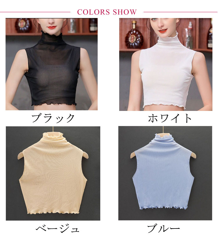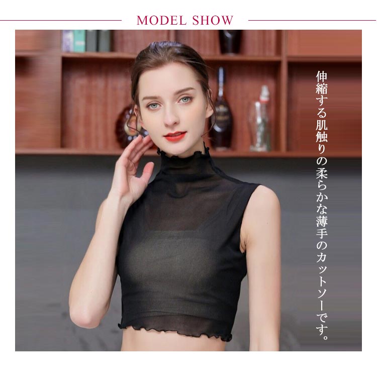シースルー カットソー レース ハイネック 付け襟 タートルネック フリルネック レイヤード風 タートル レイヤード 重ね着 インナー レディース レースハイネック ノースリーブカットソー つけ襟 つけえり 女性 グッズ