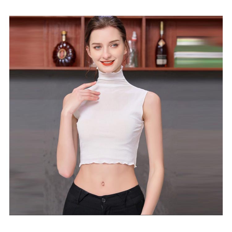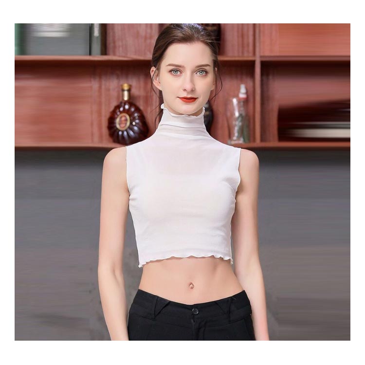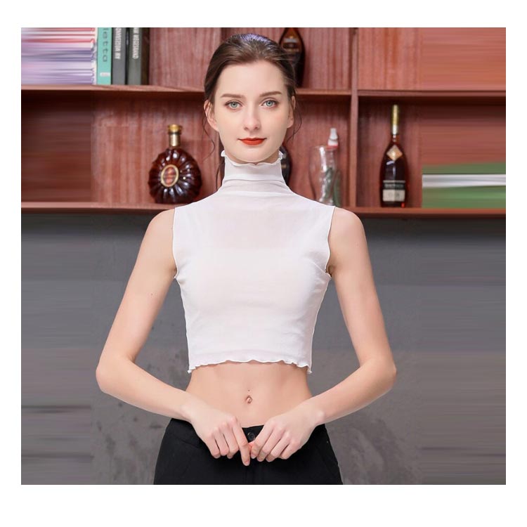 首元はハイネックになっており、上品なフリルが施されています。伸縮する肌触りの柔らかな薄手のカットソーです。メイン使いだけでなく、インナー使いやレイヤードスタイルにも合わせやすいので幅広い着方をお楽しみください♪