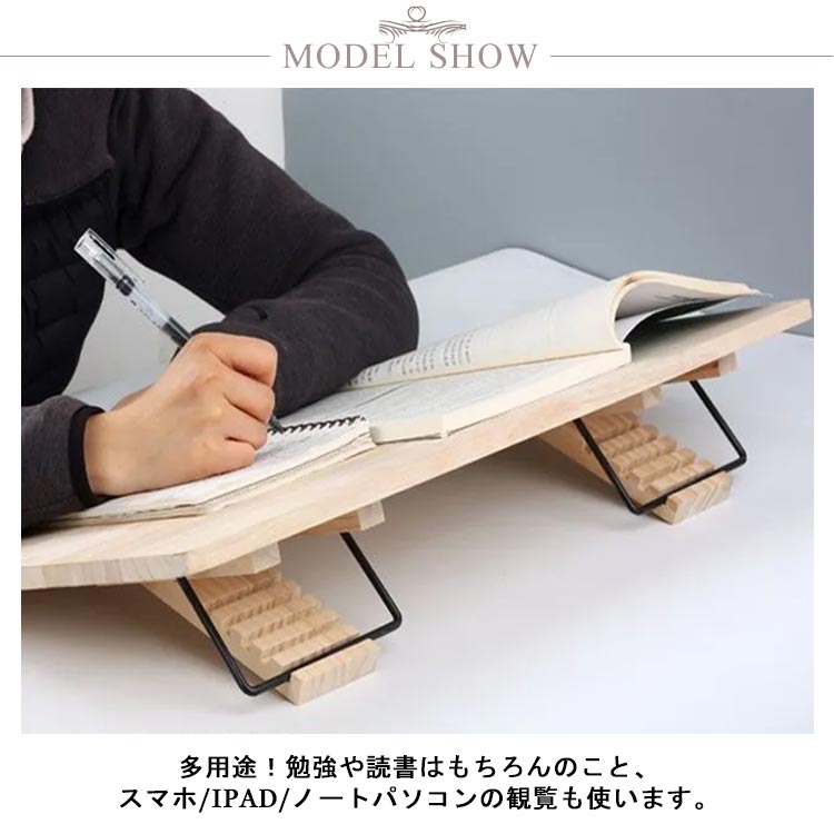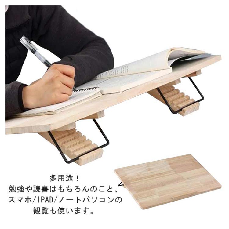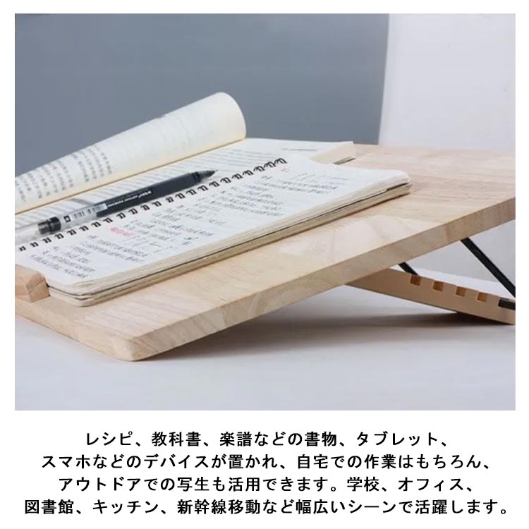 | 多用途!勉強や読書はもちろんのこと、スマホ/iPad/ノートパソコンの観覧も使います。 本立て?ブックスタンドにもなるので教科書などを置いて勉強したり、書き写したりするのに大変便利です。らくらく読書。お好みの角度に調節可能。 姿勢が良くなります。子供が目の健康や勉強の姿勢を保ちながら目の疲れや身体的疲労を軽減する、首の背中や目の痛みを軽減し、正しい姿勢を促すことができます。 折り畳むことができるので、収納にも持ち運びにも便利!プレゼントとしてもオススメ。 レシピ、教科書、楽譜などの書物、タブレット、スマホなどのデバイスが置かれ、自宅での作業はもちろん、アウトドアでの写生も活用できます。学校、オフィス、図書館、キッチン、新幹線移動など幅広いシーンで活躍します。 | |