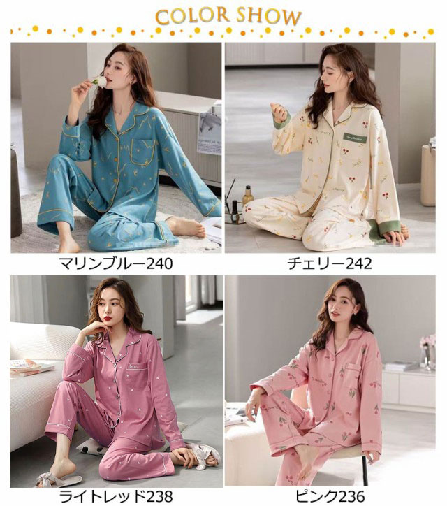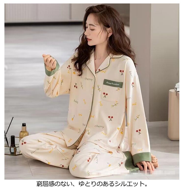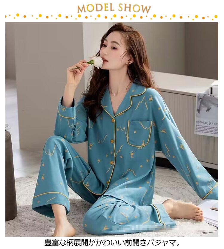 M-5XL コットンパジャマ豊富な柄展開がかわいい前開きパジャマ。窮屈感のない、ゆとりのあるシルエット。ウエストは総ゴム仕様でらくちん。