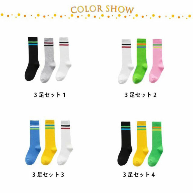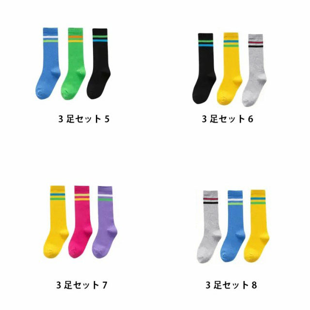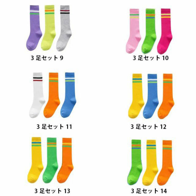 ソックス 3足セット ライン ハイソックス 春秋 キッズ 女の子 男の子 靴下 ソックス 子供靴下 ロング丈 ボーダーソックス ボーダータイツ 子ども ベビー ジュニア 子供用 伸縮性 綿 コットン 柔らかい 通気性 通園 通学 ダンス衣装 発表会 オールシーズン 送料無料
